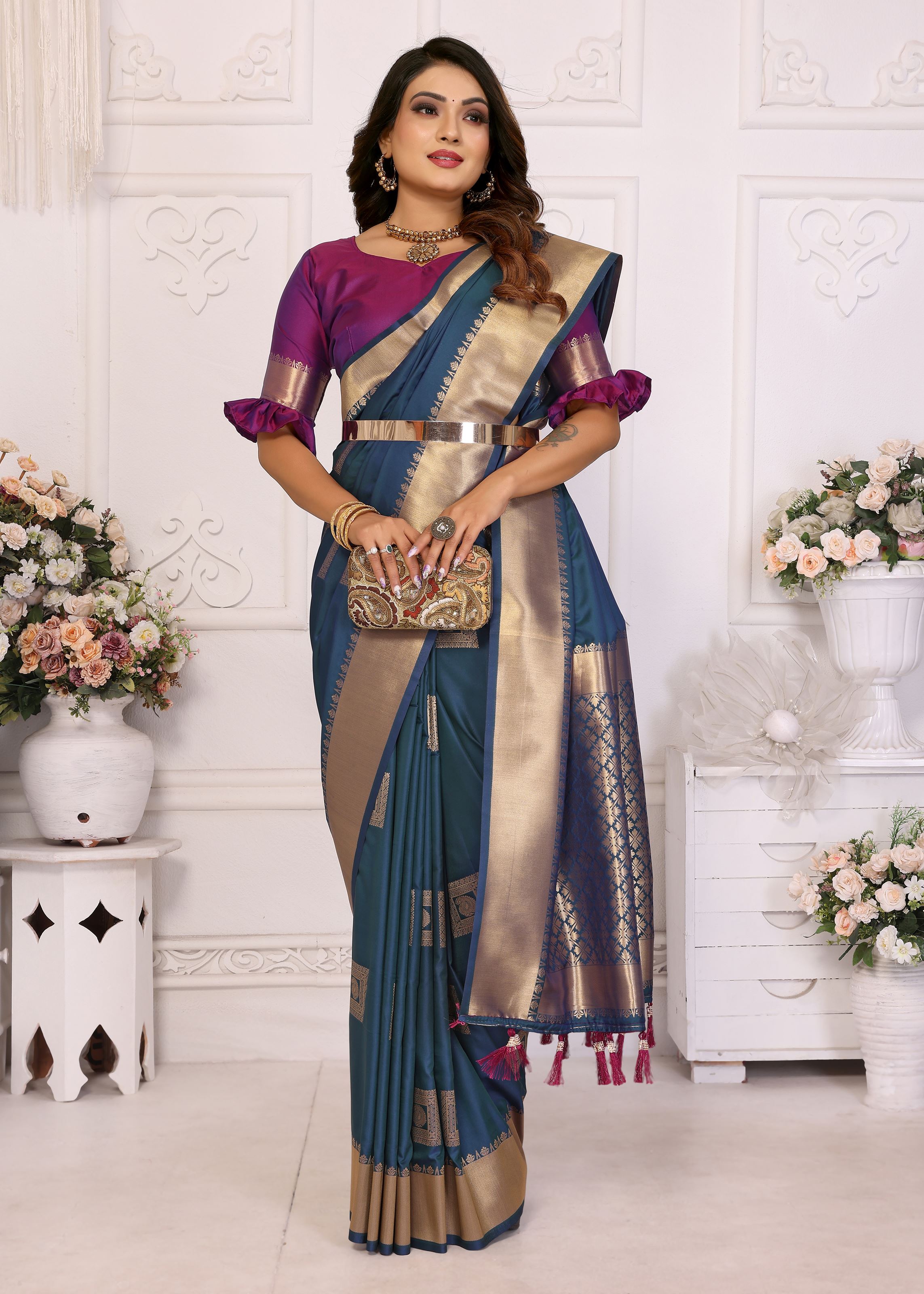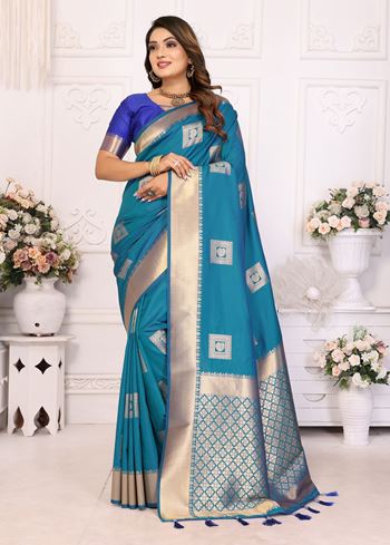 Blue Graceful Soft Silk Saree With Woven Zari Work