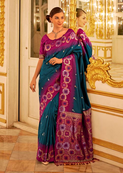 AquaBlue Soft Silk Saree With Jacquard Woven Work