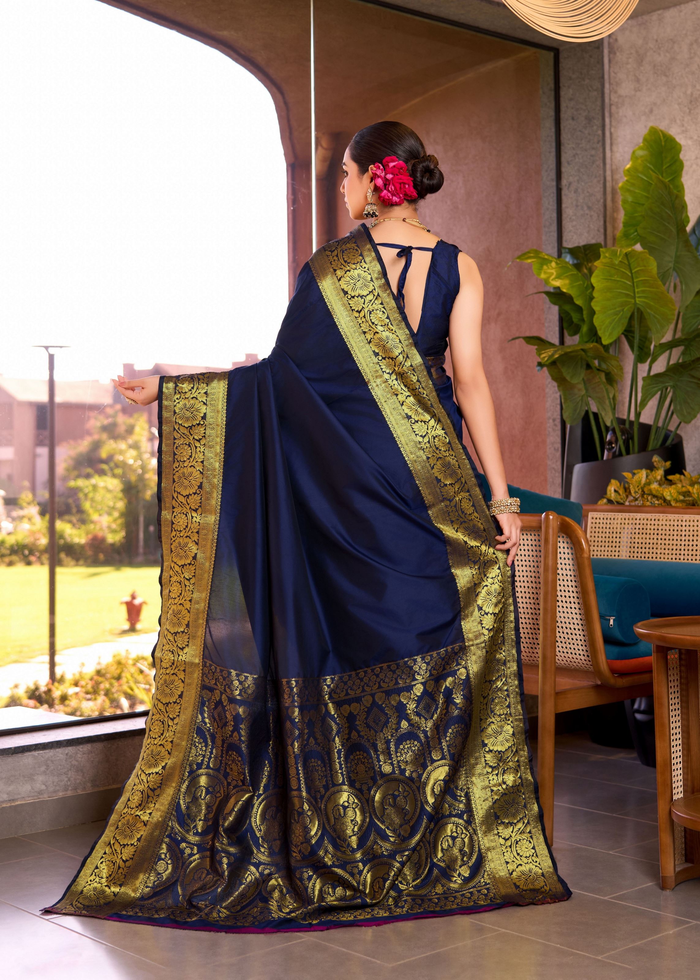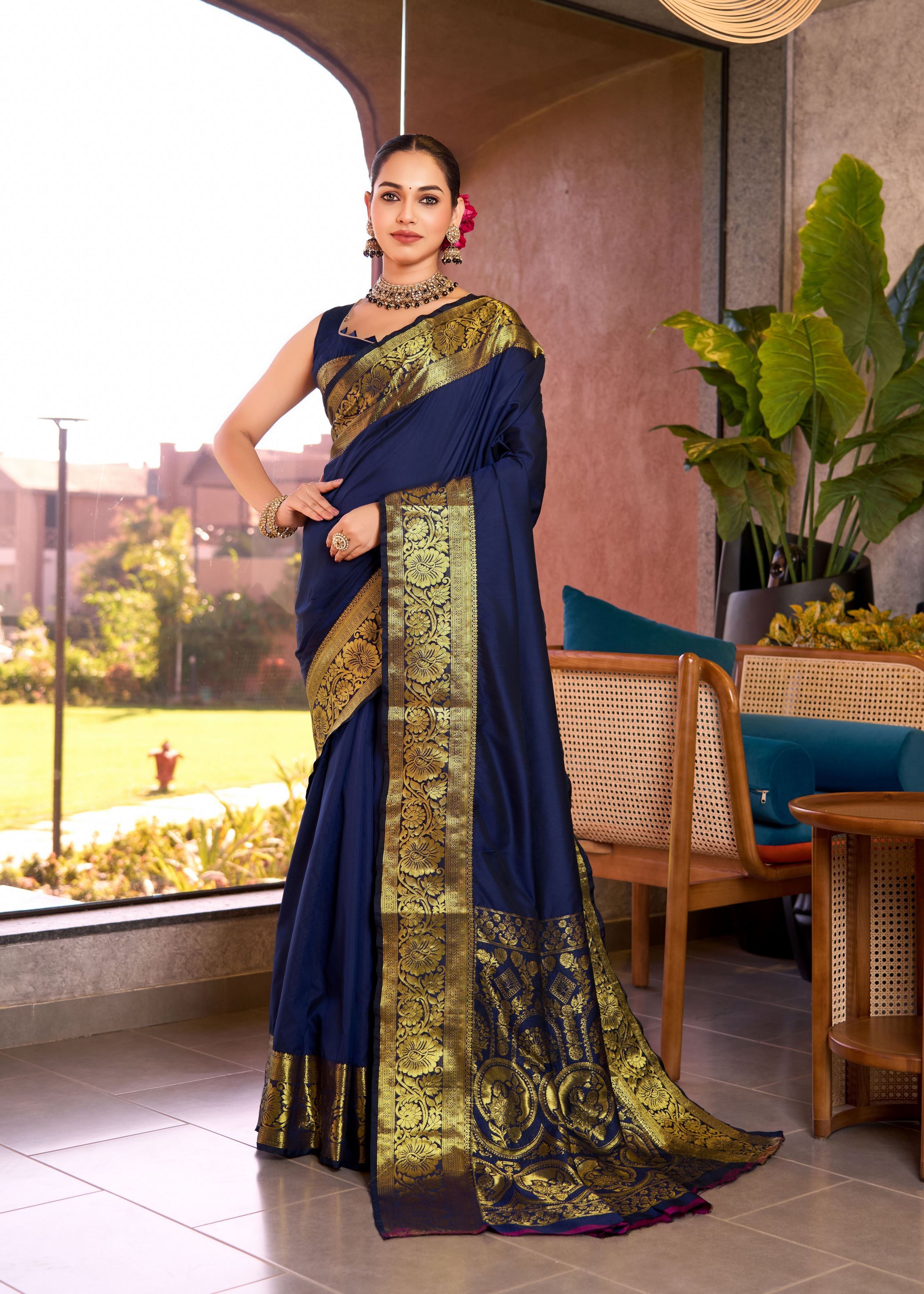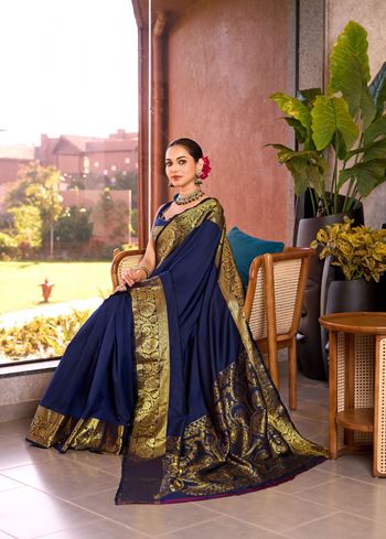 Accompanied by a matching blue silk blend blouse, this ensemble allows customization to suit your style—whether you prefer a traditional or a modern blouse design. Together, the saree and blouse create a harmonious and refined outfit that highlights your personality.Pair this saree with silver or Kundan jewelry, elegant bangles, and a statement clutch for a complete ethnic look. A neat bun or soft curls will perfectly complement the saree’s royal vibe.Elegant, versatile, and luxurious, this blue woven jari soft silk saree is a must-have for women who desire timeless beauty with a touch of grandeur.