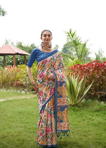 Aethnofit Fashions presents a curated collection of designer sarees online, including tussar silk, art silk, and other luxurious fabrics. Explore our Bollywood Saree Blouse collection for festive styling or browse our bridal and ethnic wear selections for special occasions. Enjoy affordable luxury, fast delivery, and exclusive deals while embracing the latest 2025 ethnic fashion trends.This blue tussar silk Kalamkari saree is the perfect blend of tradition, elegance, and contemporary style. Available for worldwide shipping, including USA and India, you can shop confidently from our online boutique and elevate your ethnic wardrobe with premium designer sarees.