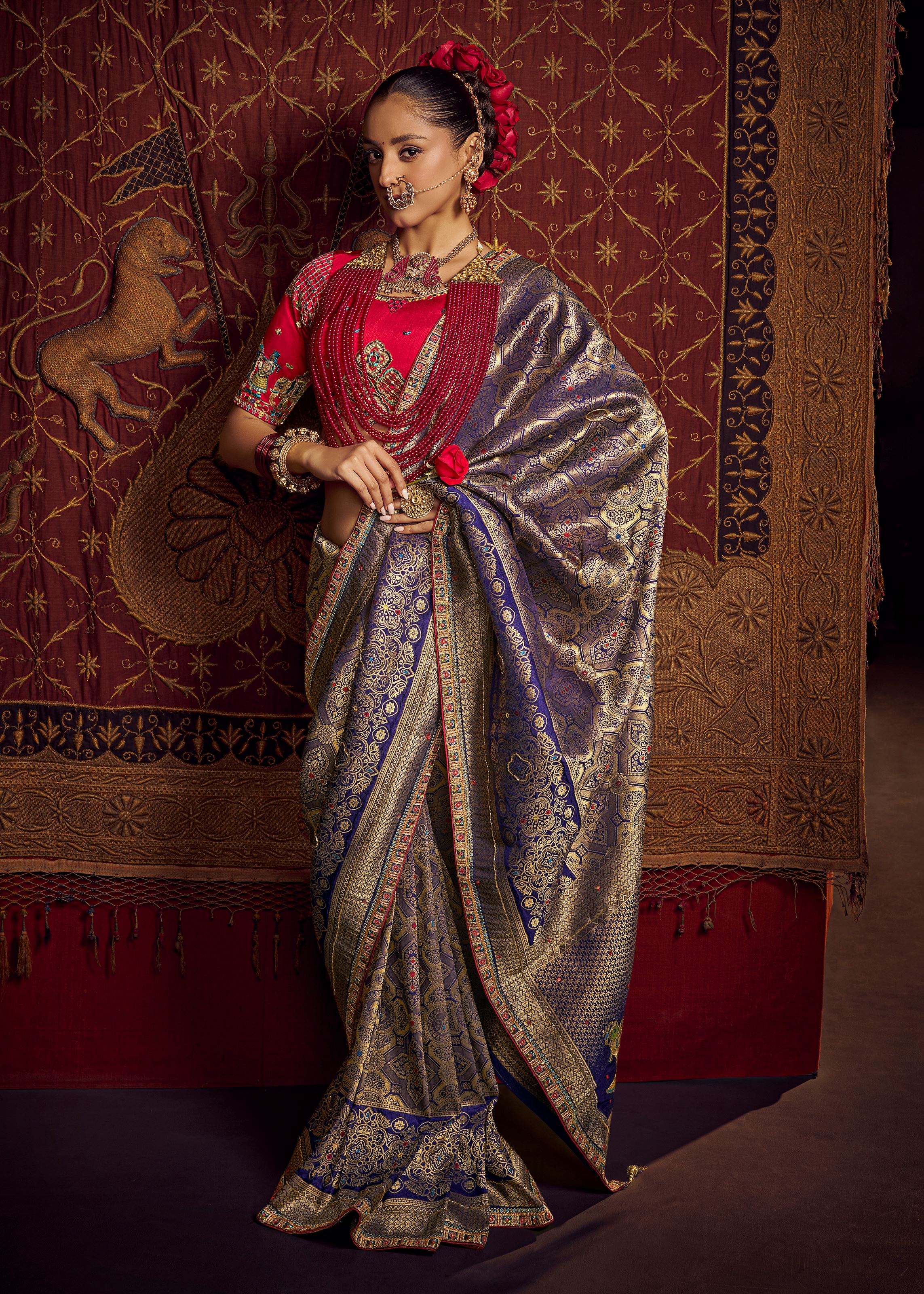 Step into the spotlight with the timeless elegance of this Blue Viscose Dola Saree, a perfect fusion of tradition and sophistication. Crafted from pure viscose dola, the fabric offers a luxurious drape, silky texture, and subtle sheen, making it a comfortable yet regal choice for festive occasions, weddings, and grand celebrations.