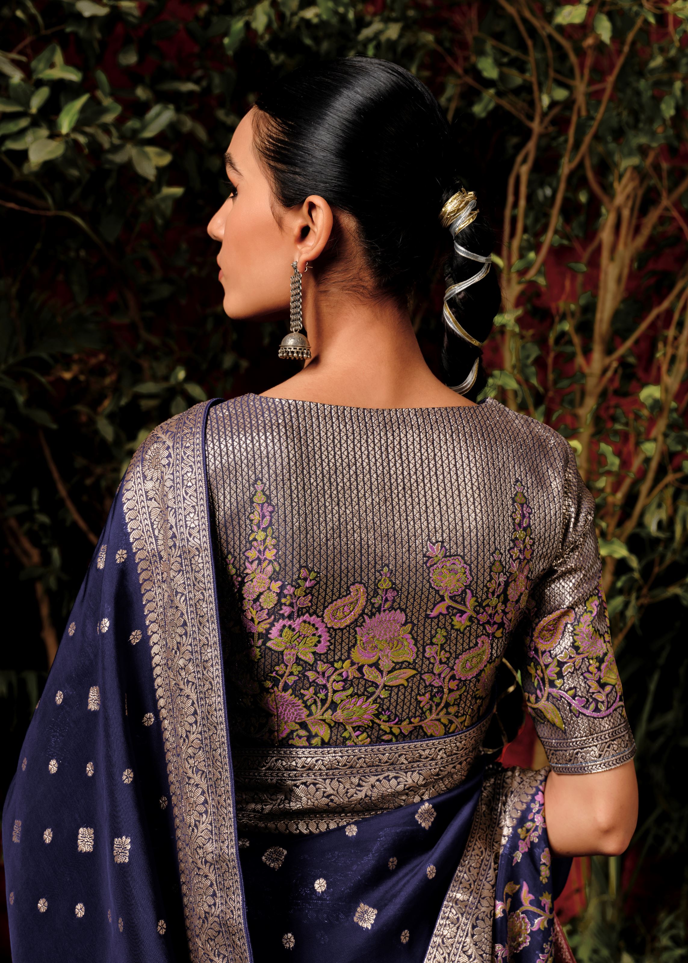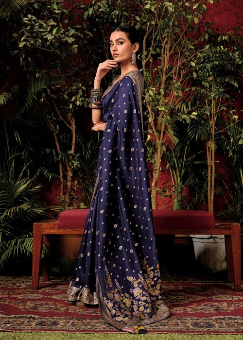 Blue Viscose Silk Saree With Jacquard Woven Work
