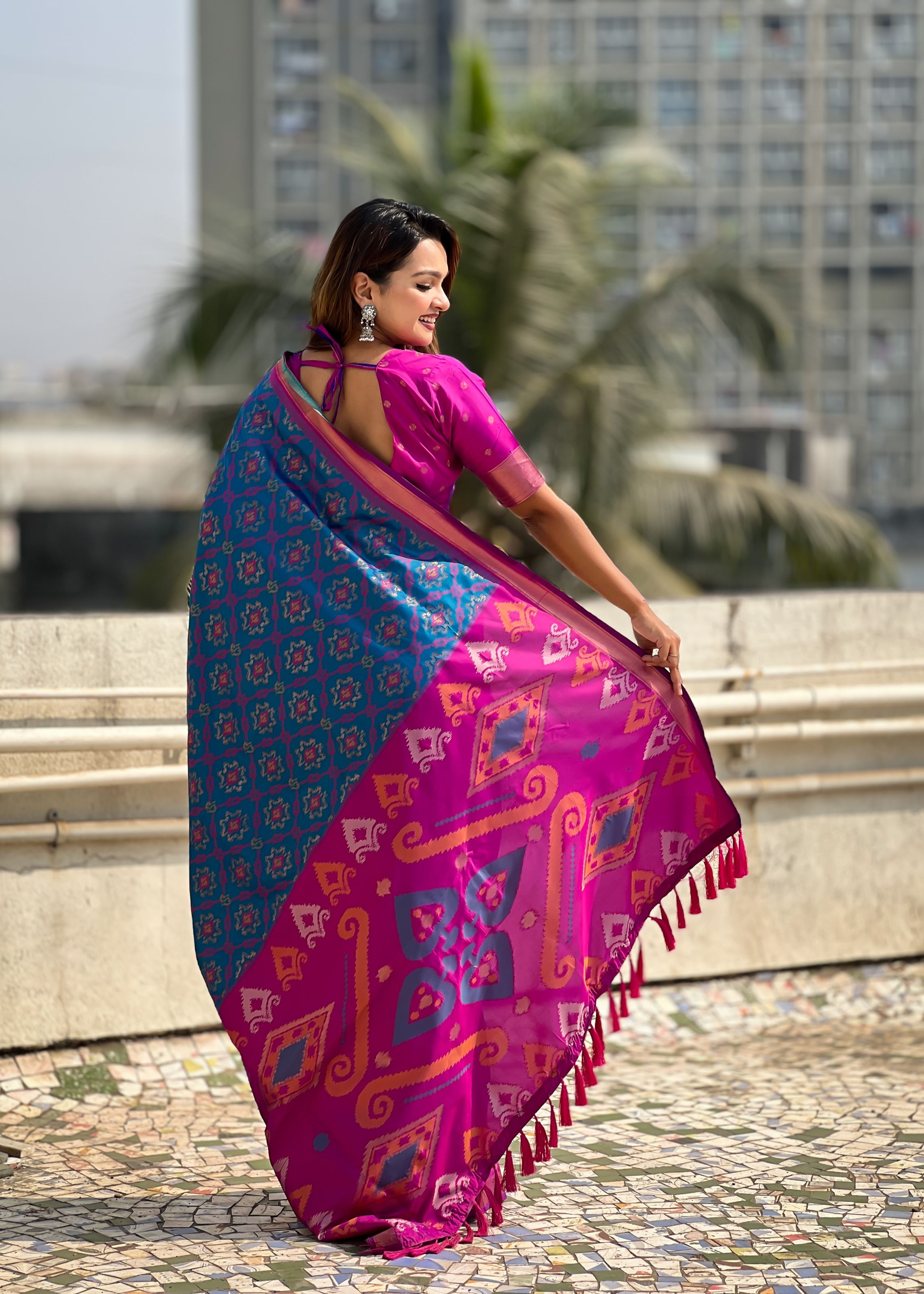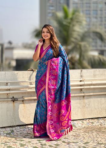Blue Woven Meenakari Ikkat Designer Patola Silk Ceremonial Saree