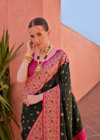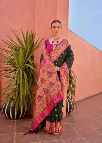 Bottle Green Paithani Silk Saree with Paithani Pallu and Zari Butti