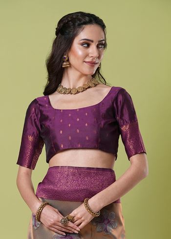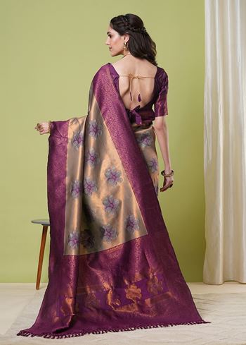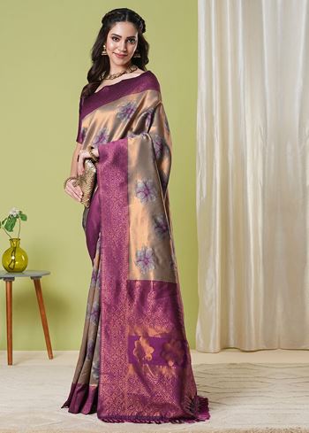 Elevate your ethnic wardrobe with the Brown Banarasi Silk Woven Jacquard Designer Partywear Saree from Aethnofit Fashions. Crafted from premium silk, this saree features exquisite woven jacquard designs, showcasing the rich tradition of Banarasi craftsmanship. The warm brown shade paired with a contrasting wine silk blouse creates a sophisticated and stylish ensemble, perfect for weddings, parties, and festive celebrations.