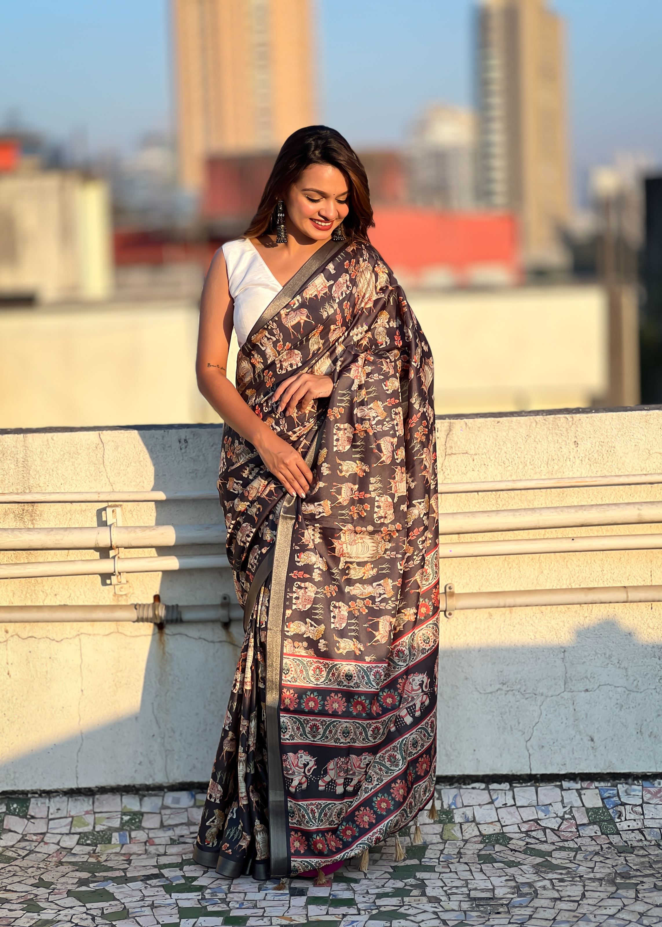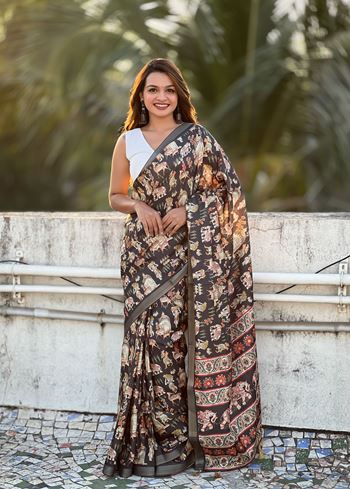 Embrace timeless elegance with the Brown Classic Tussar Silk Saree With Woven And Designer Print Work, exclusively from Aethnofit Fashions. Crafted from premium tussar silk, this saree blends luxurious comfort with sophisticated ethnic style, making it ideal for weddings, festive celebrations, parties, and formal occasions. The rich brown hue adds a warm and graceful touch, while the intricate woven patterns and designer print work showcase exceptional craftsmanship, combining tradition with contemporary fashion.