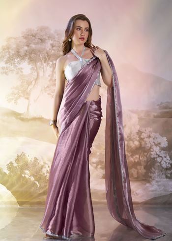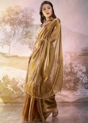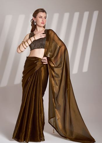 Brown Glamorous Bollywood Style Solid Fancy Designer Burberry Organza Saree