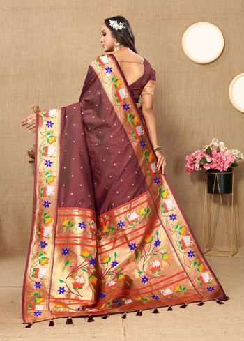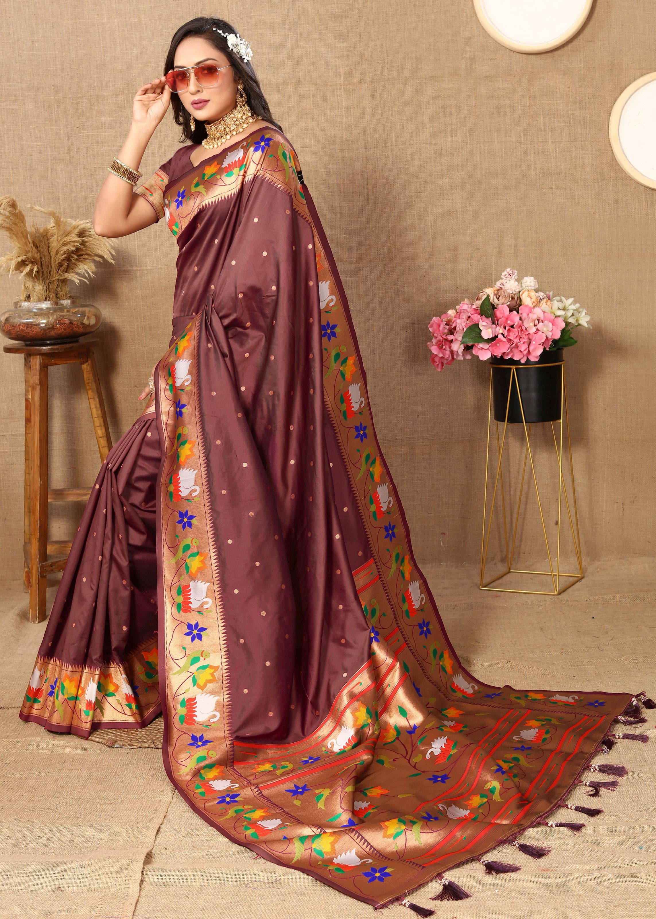 Brown Paithani Silk Woven Meenakari Paithani Designer Ethnic Heavy Looks Saree