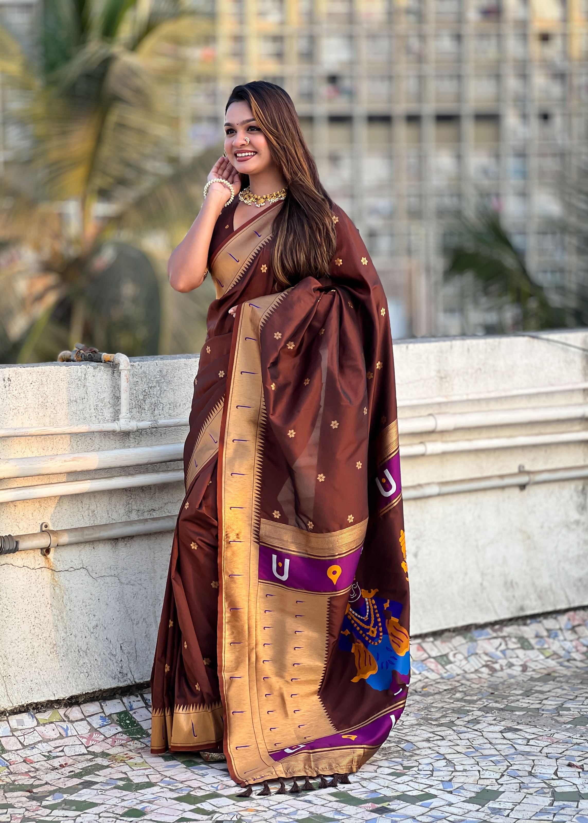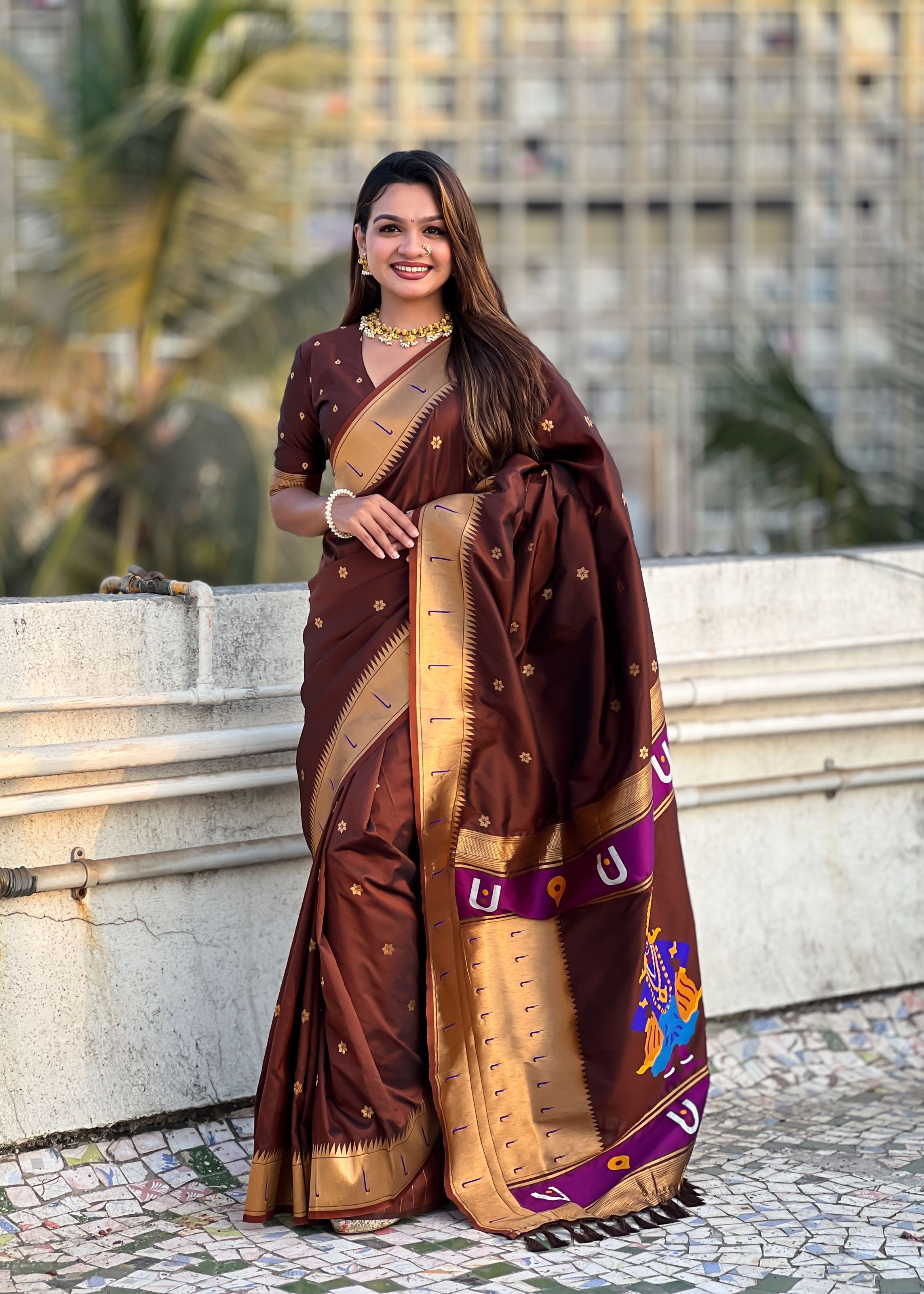 Brown Soft Silk Woven Vitthala Designer Traditional Ethnic Saree