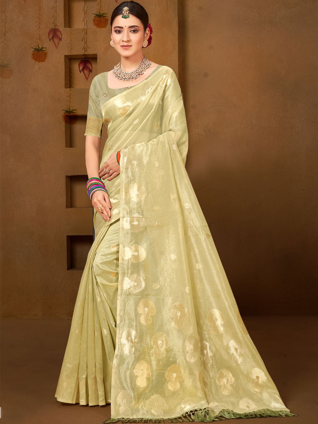 Elevate your festive style with the Captivating Olive Green Munga Kota Saree from Aethnofit Fashions, a refined blend of traditional weaving and contemporary elegance. Crafted from authentic Munga Kota fabric, this saree offers a lightweight, airy texture with a delicate sheen, ensuring lasting comfort during weddings, festive gatherings, and cultural celebrations. The earthy olive green hue adds a unique charm, making it a standout choice for those who prefer subtle sophistication with a touch of tradition.