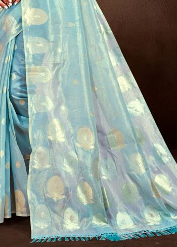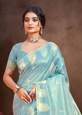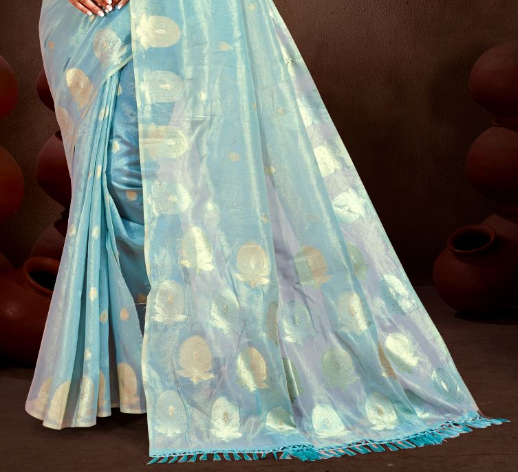 Chic Sky Blue Munga kota Festival Saree for Women