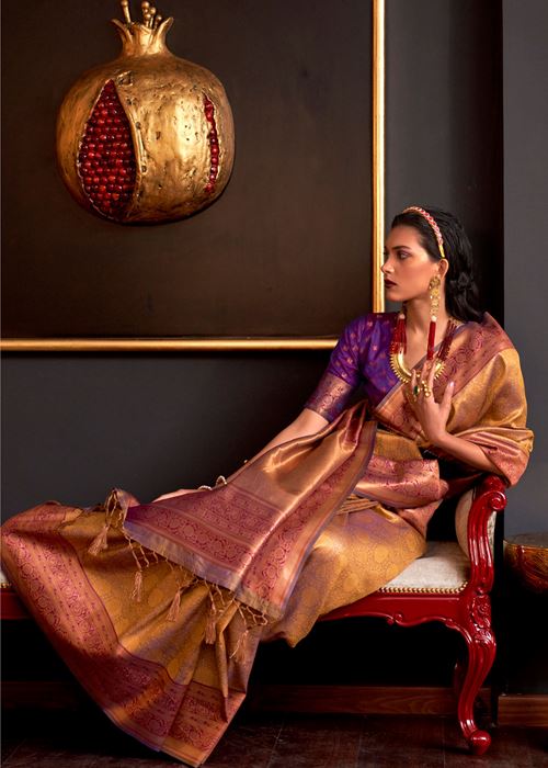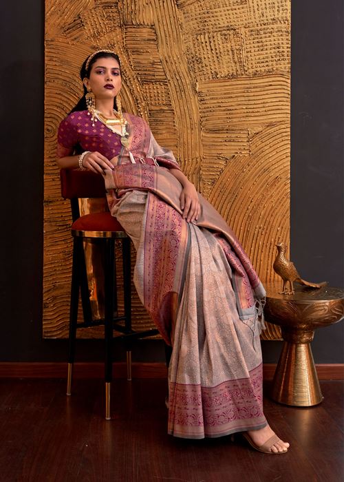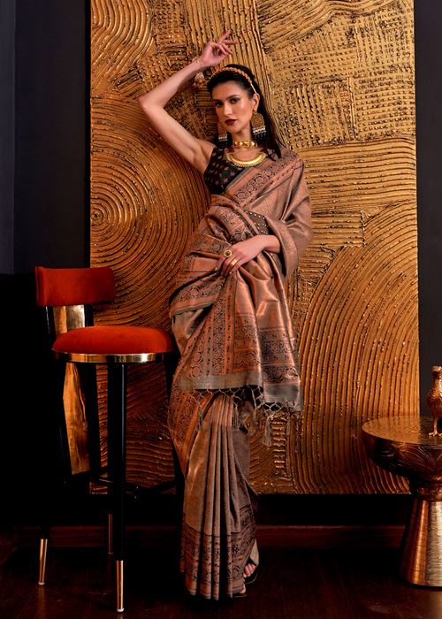 Chocolate Handloom Weaving Silk Saree With Woven Work