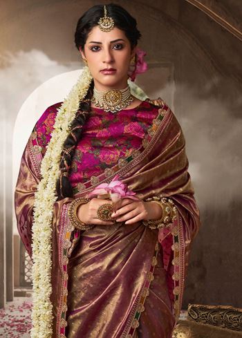 Explore our curated online collection of designer sarees, featuring pure tissue, Banarasi silk, pure silk, modal cotton, georgette, chiffon, and more. This Chocolate Pure Tissue Saree is a versatile addition to your ethnic wardrobe and is available with worldwide shipping, including USA.
