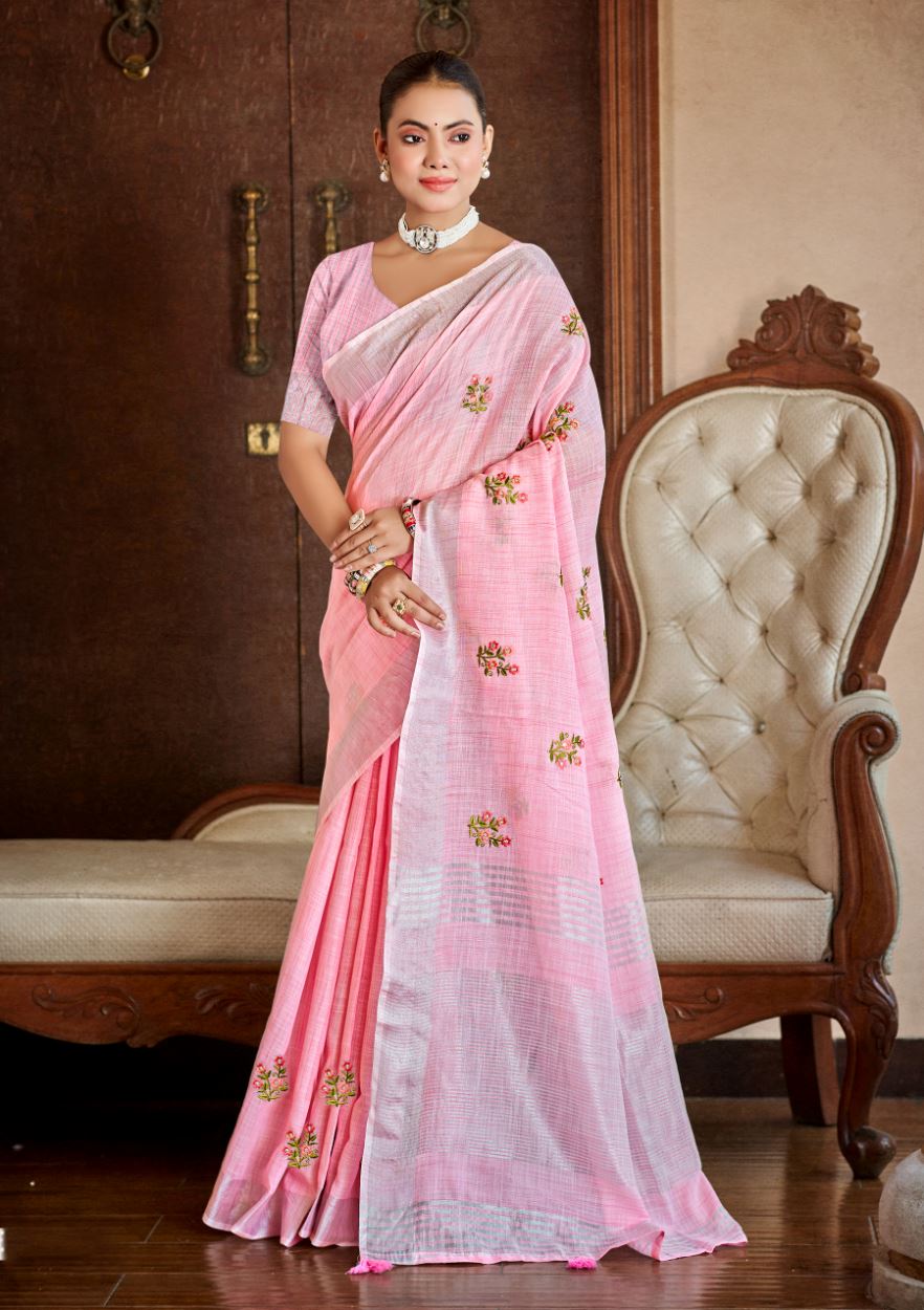 Radiate elegance and charm with the Pink Linen Saree from Aethnofit Fashions, a timeless choice for women who appreciate both tradition and comfort. Crafted from high-quality linen, this saree offers a naturally soft, breathable texture, ensuring effortless draping and day-long ease. The delightful pink hue adds a touch of youthful vibrancy while maintaining an understated grace, making it perfect for festive occasions, weddings, and cultural celebrations.