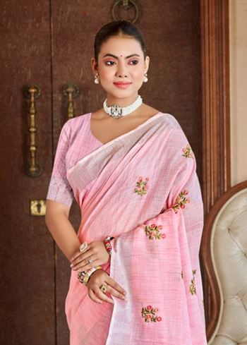 The matching pink linen blouse enhances the saree’s cohesive look, giving you styling freedom to match your mood and occasion. Keep it subtle with delicate pearls or elevate your look with bold gold jewellery for a more festive statement. Its versatile colour and minimalist design allow it to shine in both casual gatherings and grand events.