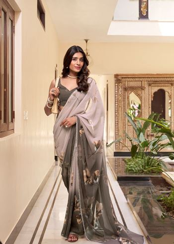 Embrace understated elegance with our Coffee Floral Marble Saree, crafted from lightweight and breathable weightless marble fabric that ensures effortless comfort throughout the day. The warm coffee hue is beautifully adorned with delicate floral patterns, while the intricate lace border adds a touch of refined charm. Paired with a matching coffee-colored blouse made from the same fabric, this saree is perfect for festive occasions, casual gatherings, or any event where subtle sophistication is desired.