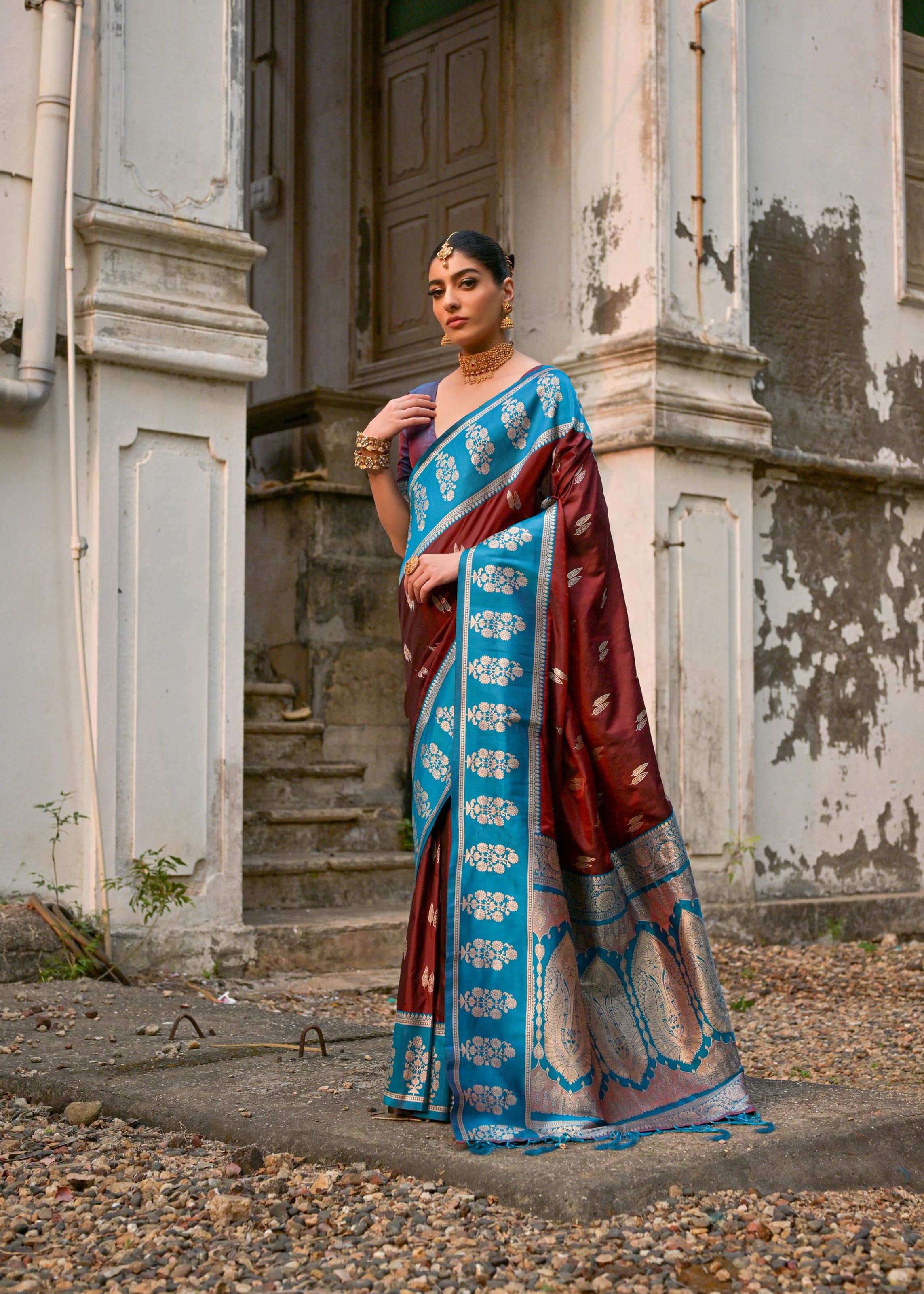 Coffee Banarasi Silk Woven Jari Designer Heavy Rich Looks Ceremonial Saree