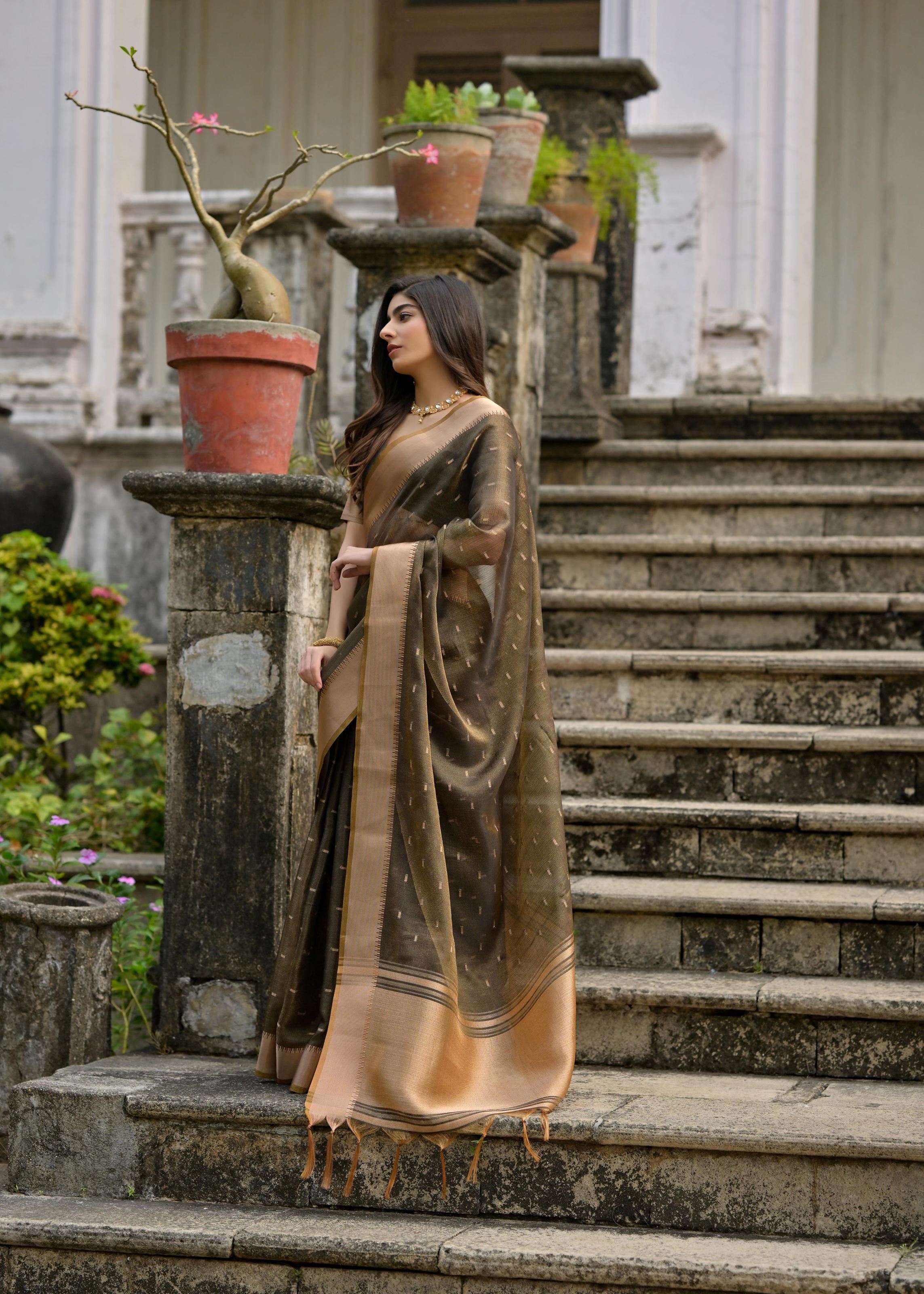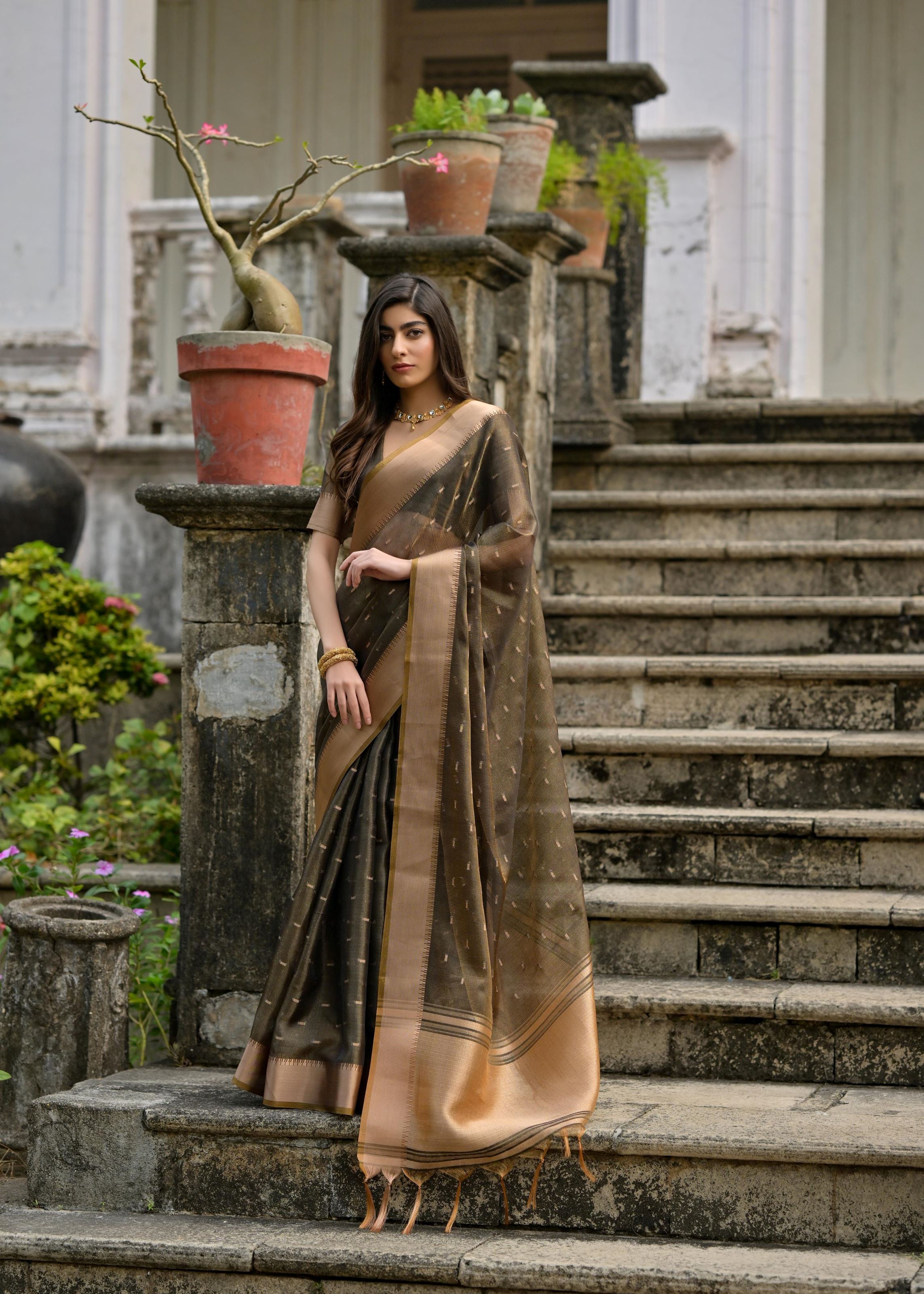 Coffee Kalyani Silk Elegant Designer Festive Wear Heavy Woven Designer Saree