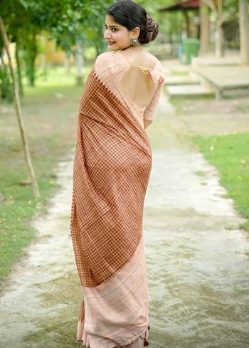 Coffee Tussar Silk Saree with Checks and Contrast Pallu