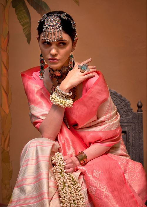 Cream Handloom Silk Saree With Jacquard Woven Work