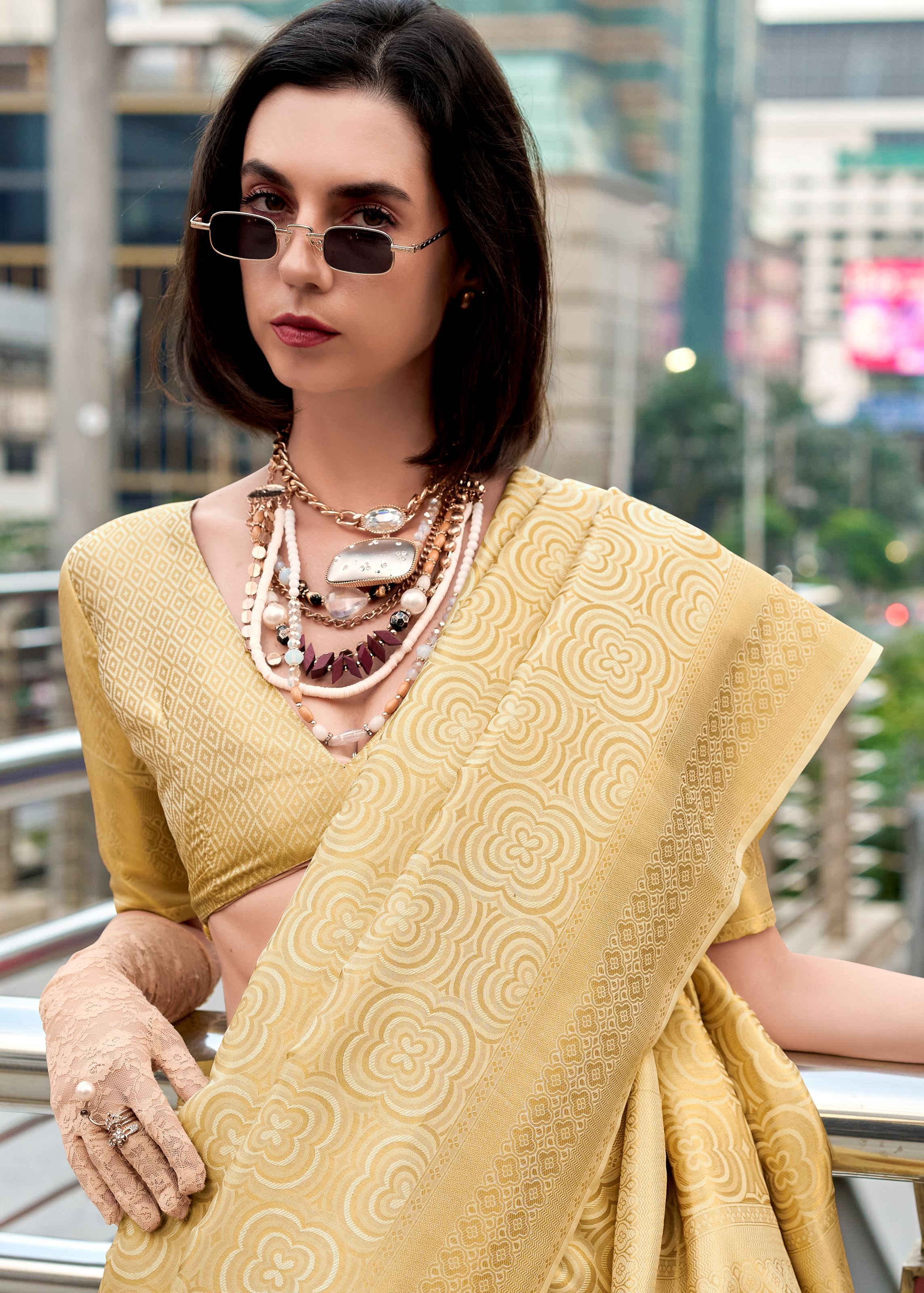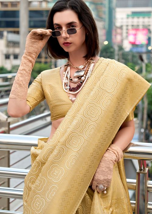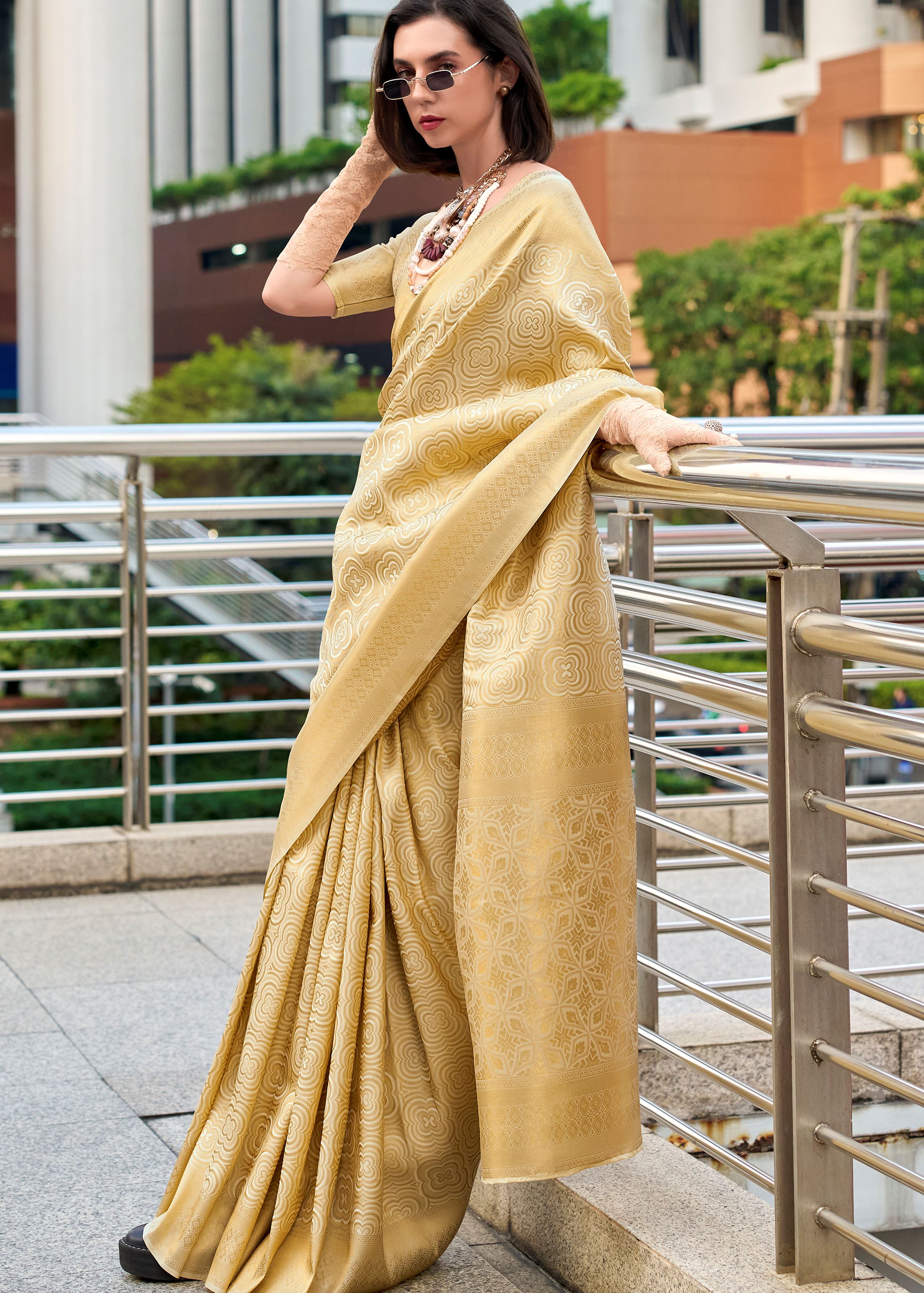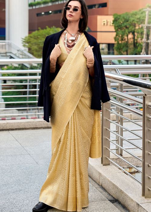 Cream Handloom Silk Saree With Jacquard Woven Work