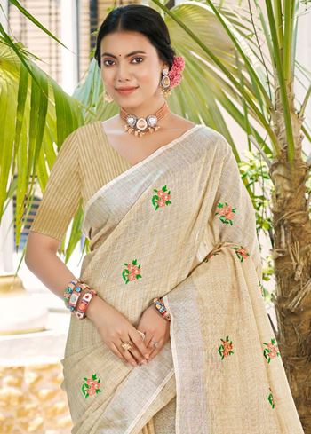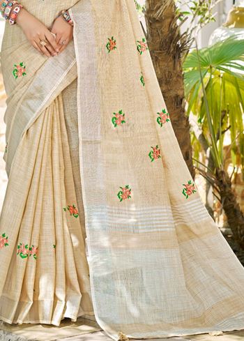 Cream Linen Saree With Sophisticated Touch and Subtle Elegance