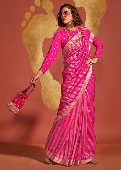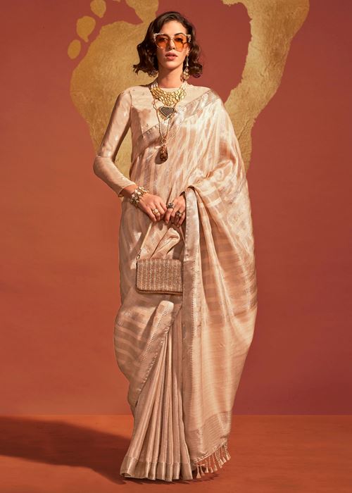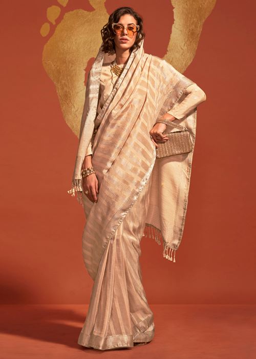 Cream Pure Viscose Handloom Silk Saree With Jacquard Woven Work