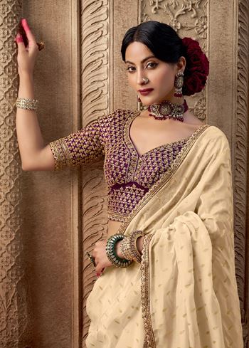 Cream Viscose Crepe Saree with Butti Weaving and Embroidered Blouse