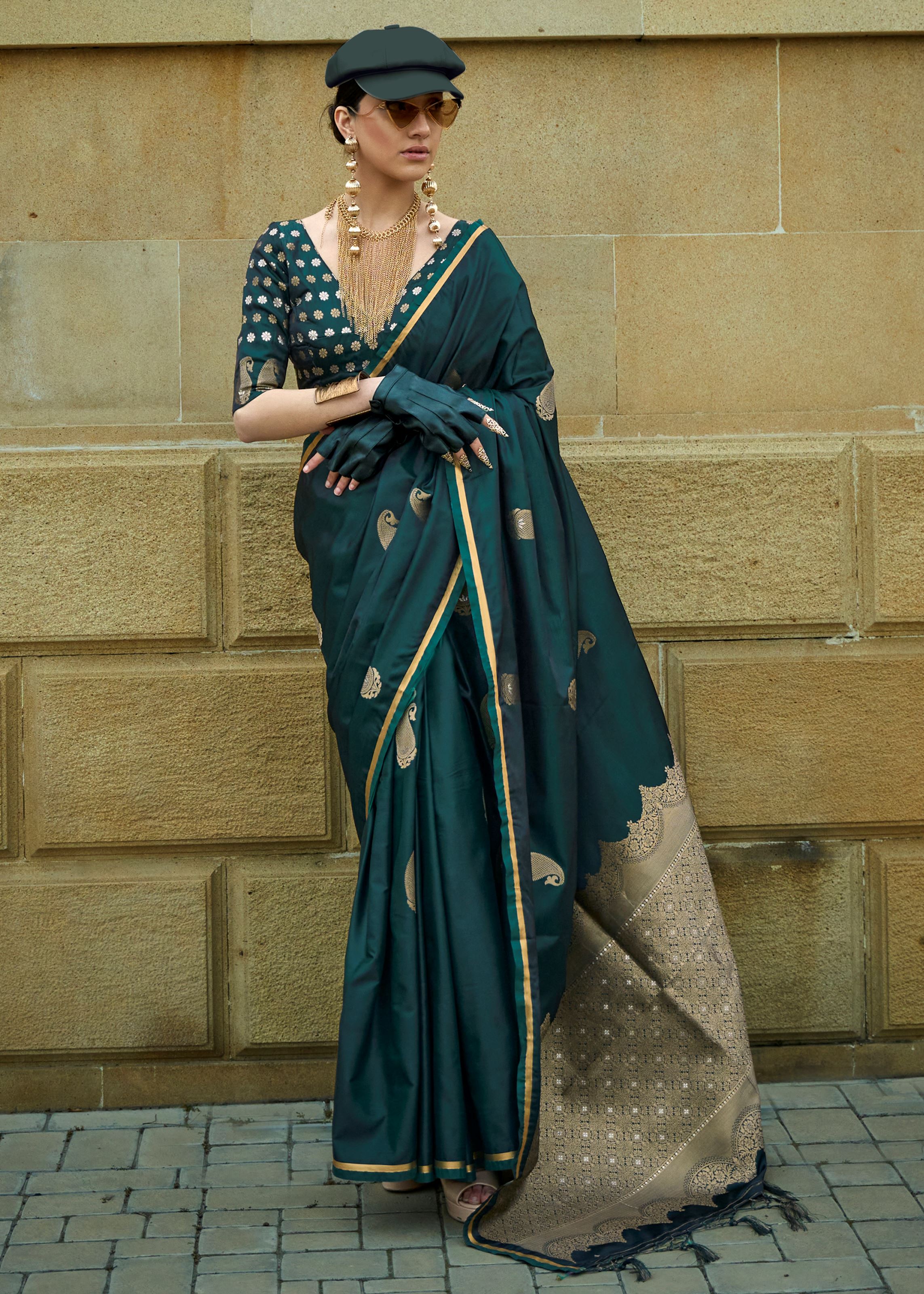 Dark Green Satin Silk Saree With Jacquard Woven Work