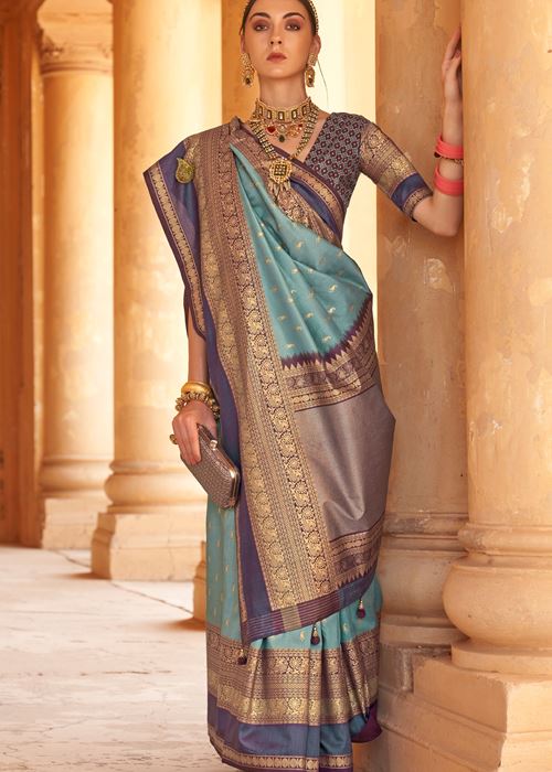 Dark Grey Silk Saree with Jacquard Woven Work