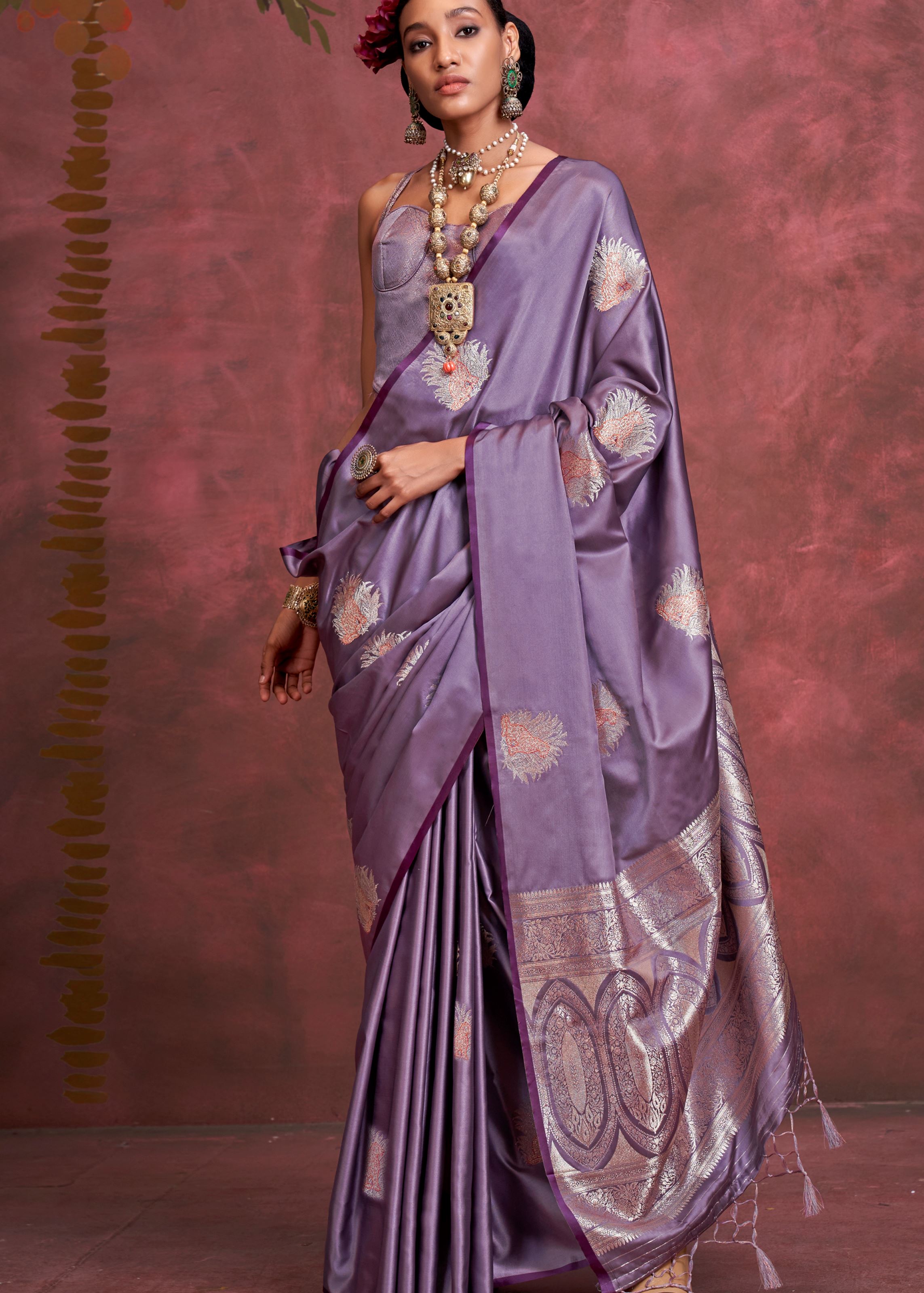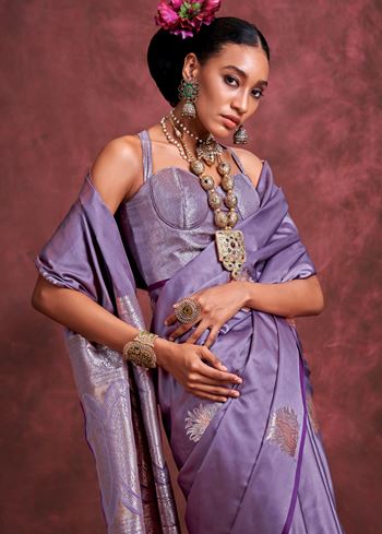 Dark Lavender Color Satin Silk Saree with Jacquard Woven Work