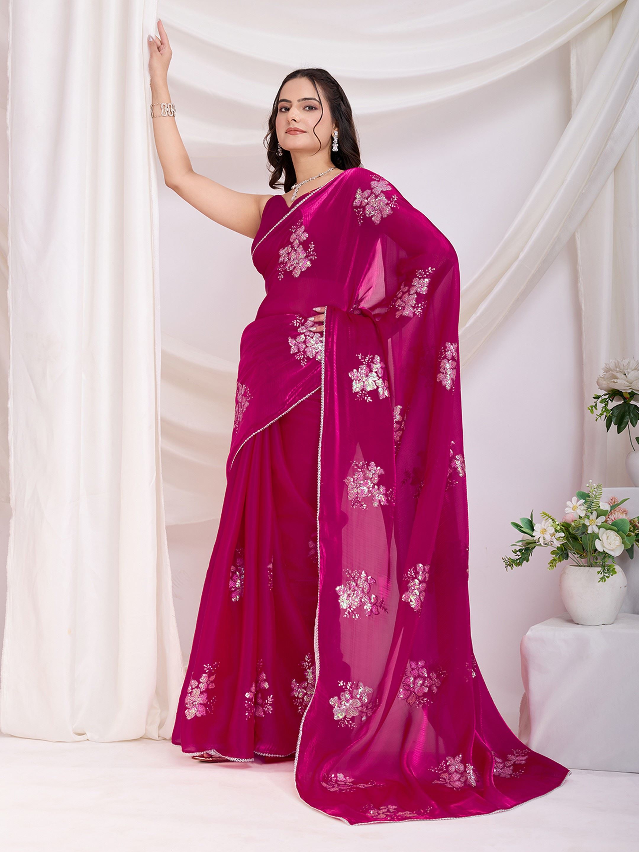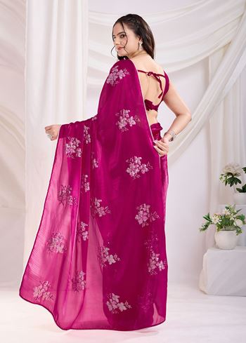 Dark Pink Jimmi Choo Sequins Embroidery Work Ethnic Party Saree