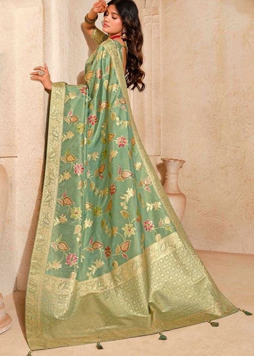 Dark Sea Green Silk Saree With Jacquard Woven Work