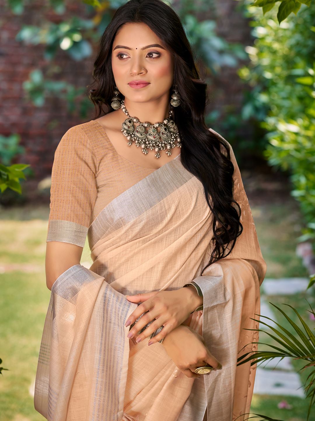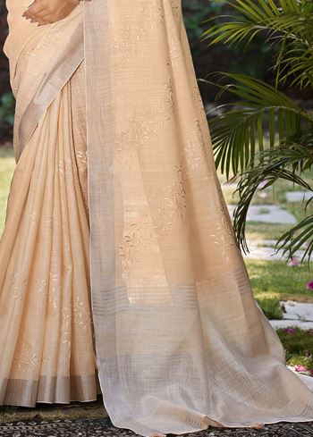 The matching sea green linen blouse completes the ensemble, providing a coordinated and sophisticated look. Its soft texture ensures comfort for extended wear, while the saree’s graceful fall adds a touch of refinement to your overall appearance. Perfect for those who appreciate understated elegance, this saree seamlessly blends traditional design with modern sensibilities.