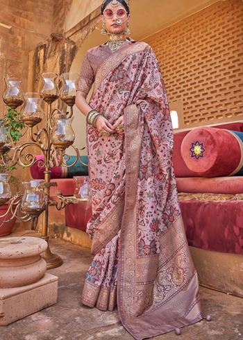 Dusty Peach Color PV Silk Saree with Smart Floral Print