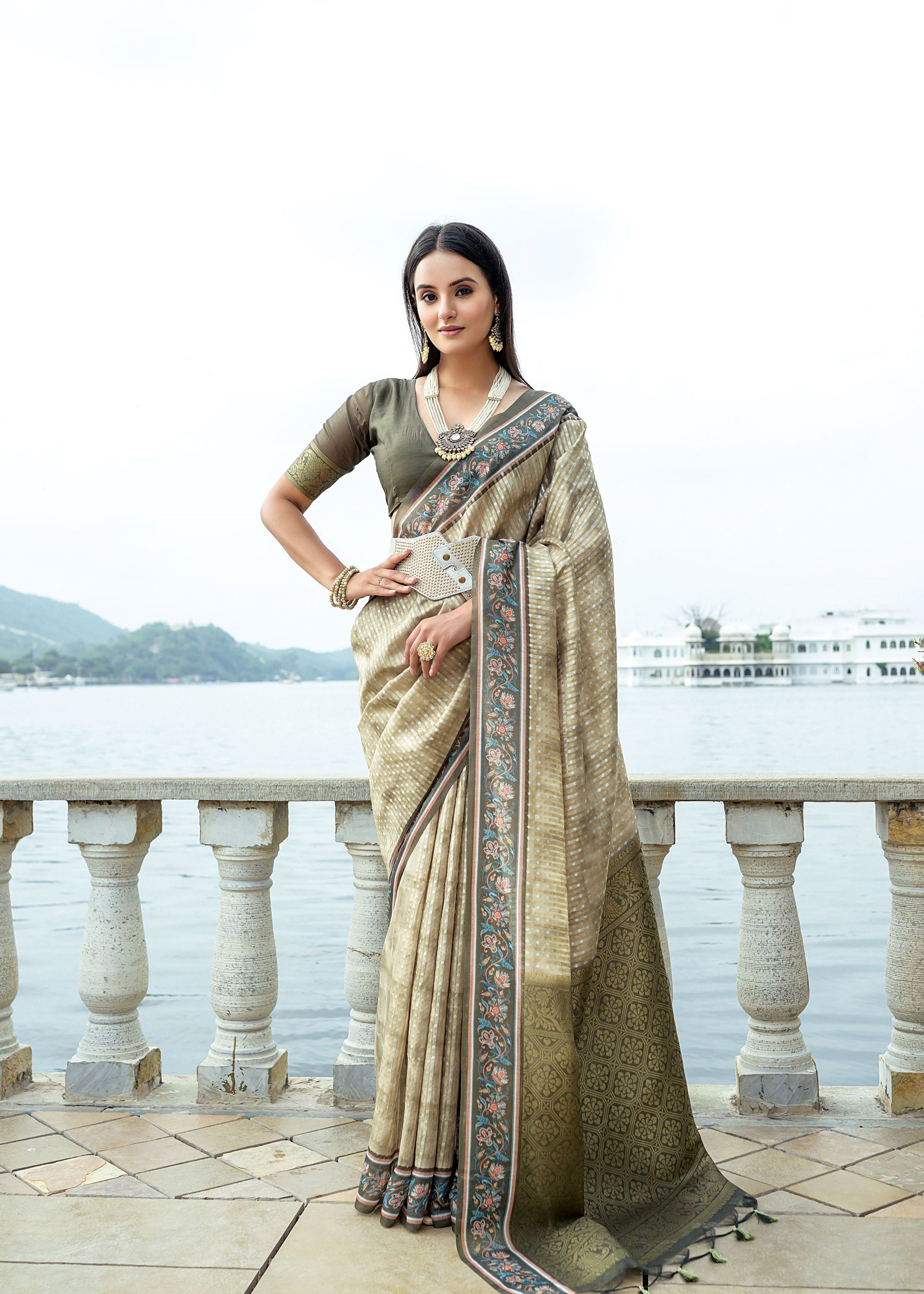 Ethnic Woven Designer Soft Silk Saree in Pista with Elegant Print Work