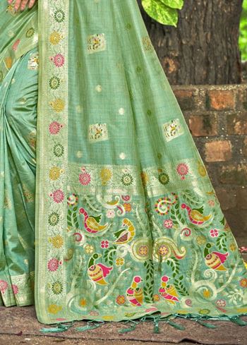 Enchanting Sea Green Assam Silk Meenakari Festival Saree