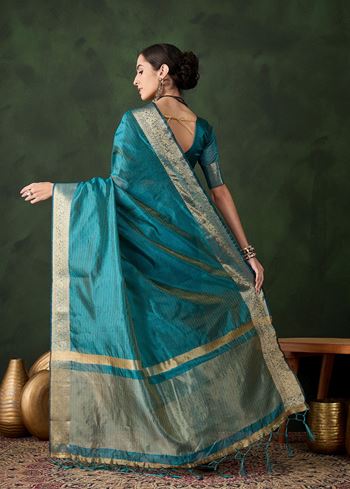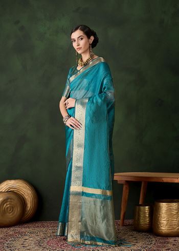 Firozi Khadi Organza Woven Jacquard Designer Traditional Festive Wear Saree