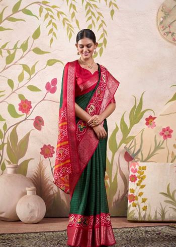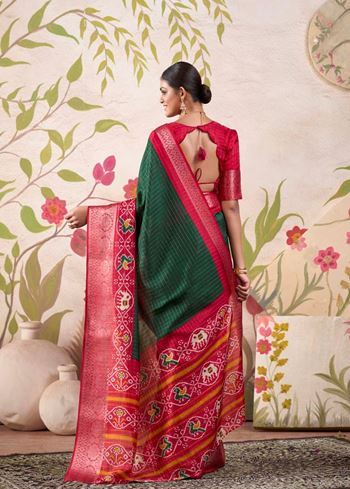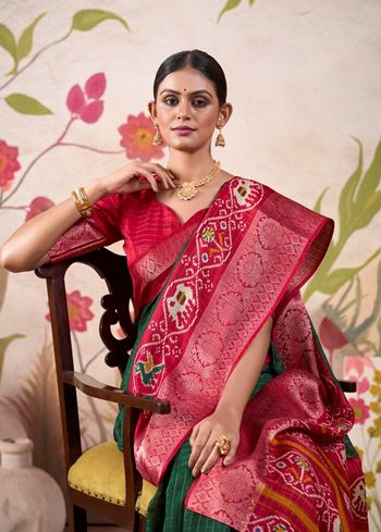 Firozi Tussar Chex Saree with Patola Print & Weaving Border