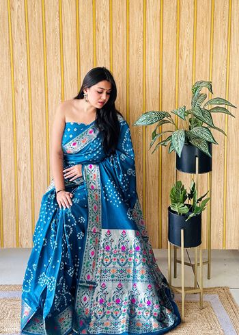 Firozi Woven Paithani Designer With Bandhej Printed Beautiful Ceremonial Saree