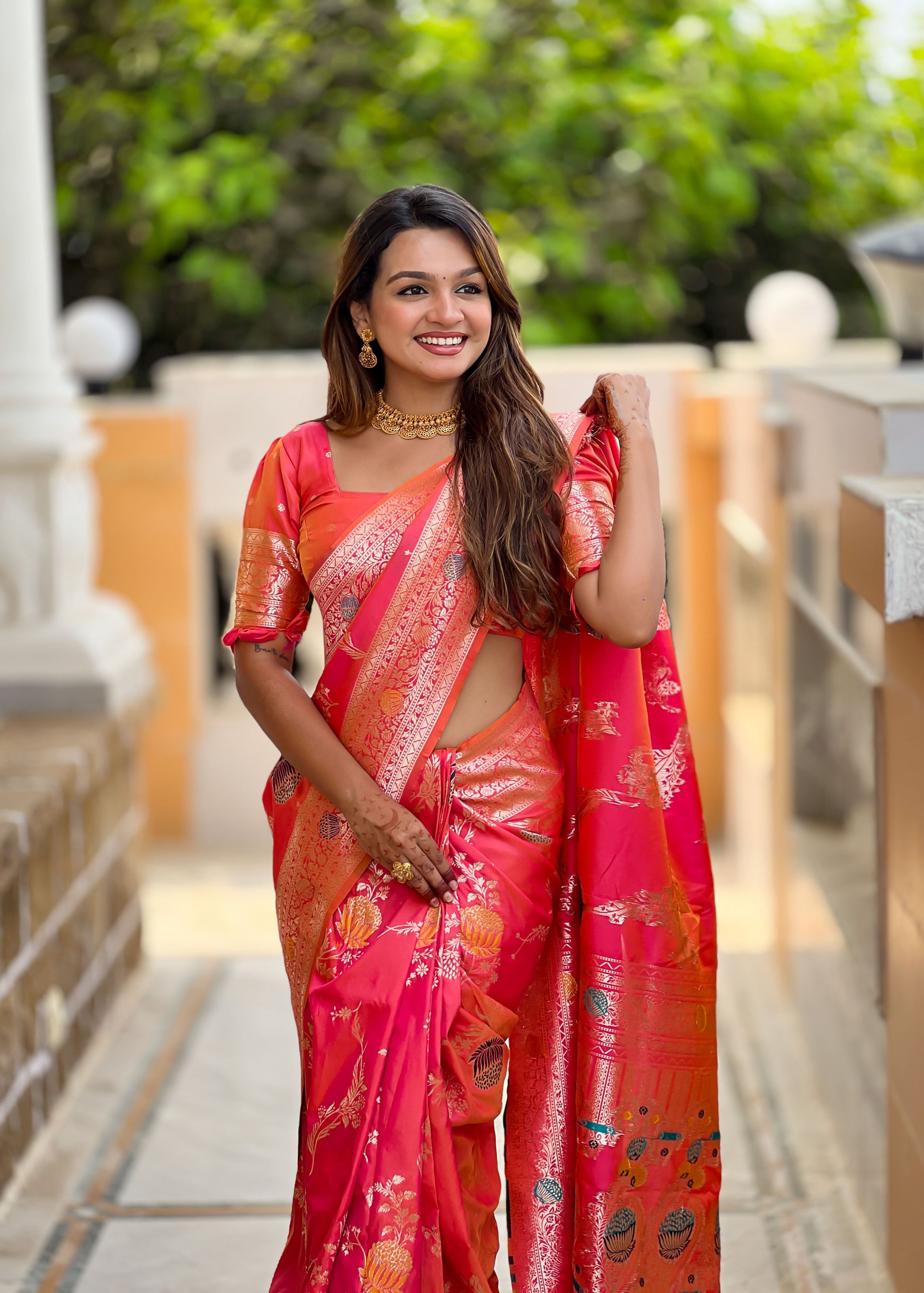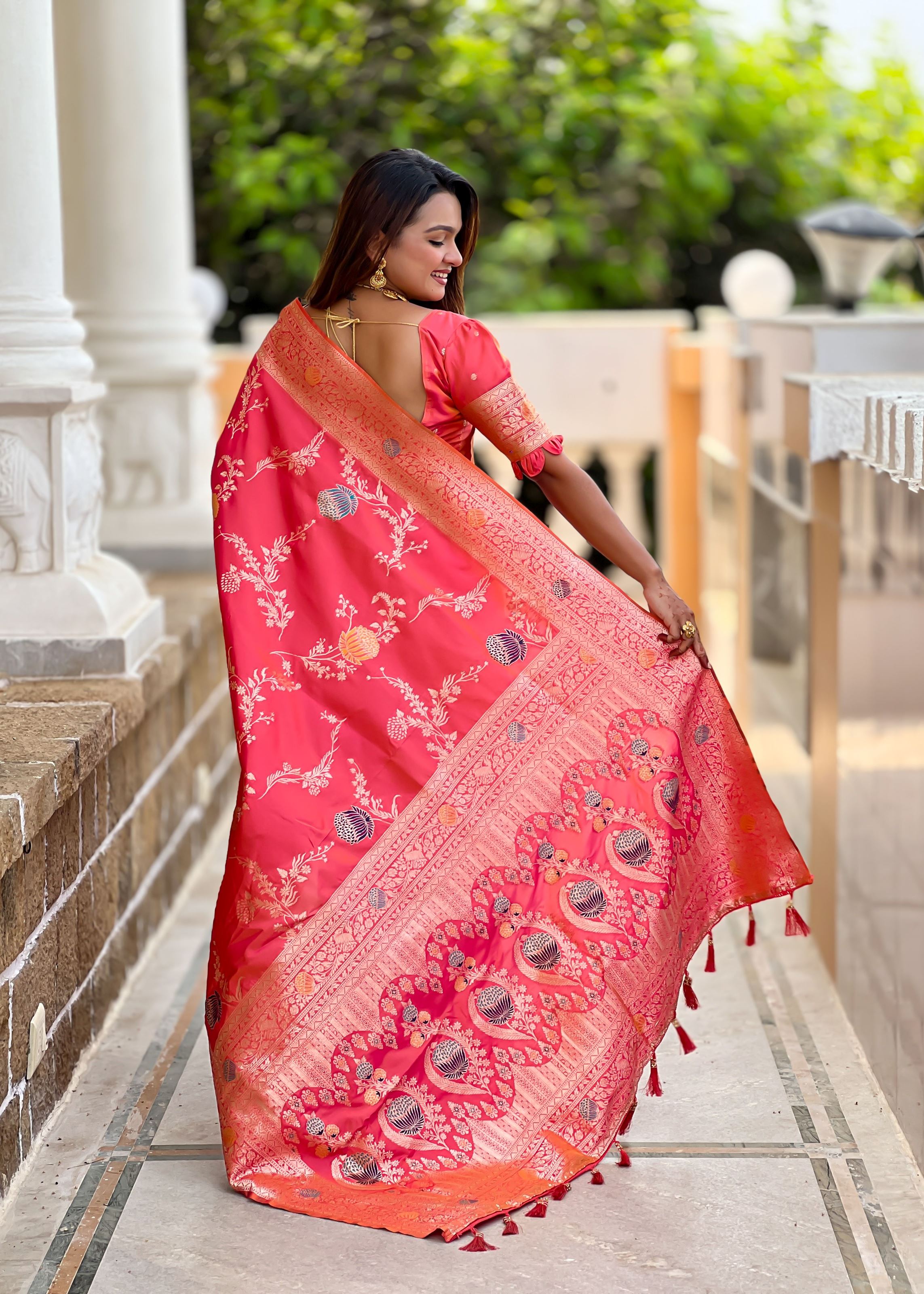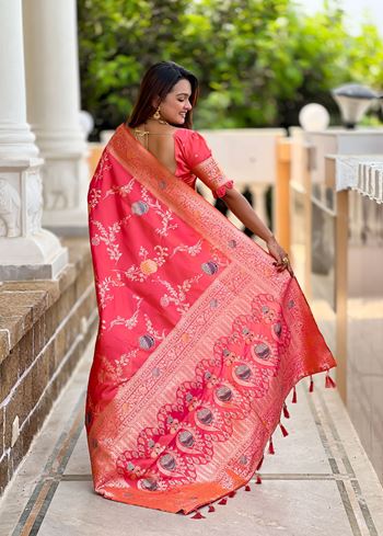 Gajri Beautiful Banarasi Silk Woven Meenakari Designer Graceful Ethnic Saree