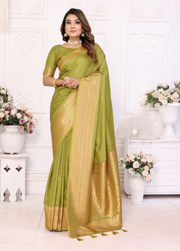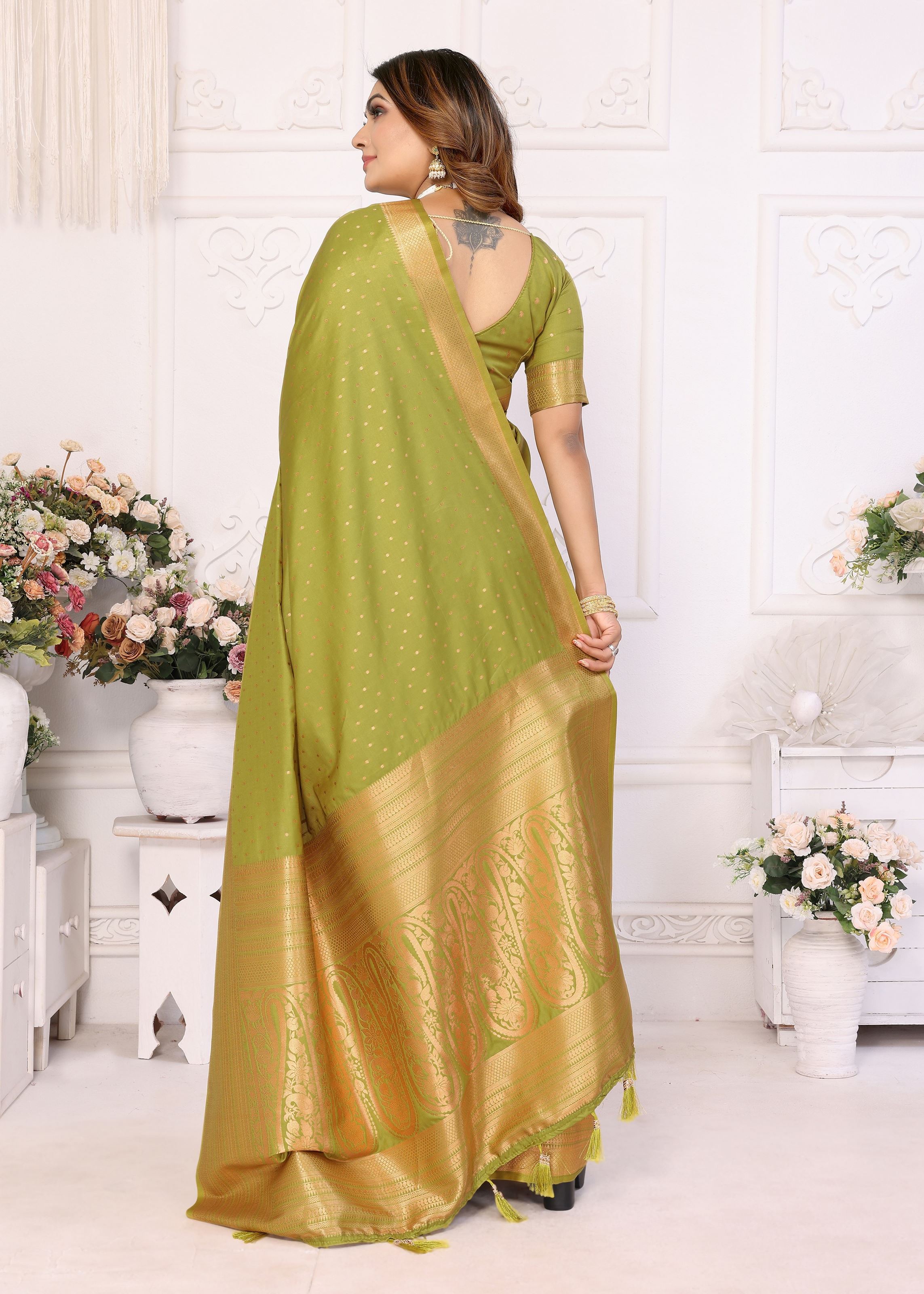 Step into timeless elegance with this Girlie Woven Jari Designer Soft Silk Saree in Green, a luxurious drape that perfectly balances heritage craftsmanship with modern sophistication. Made from a premium silk blend, this saree is enriched with intricate jari woven work that adds depth and radiance to its overall appeal. The vibrant green hue symbolizes freshness and prosperity, making it an ideal choice for weddings, festive occasions, cultural gatherings, and evening celebrations. Its soft silk texture ensures a lightweight yet regal drape, offering both comfort and grandeur.
