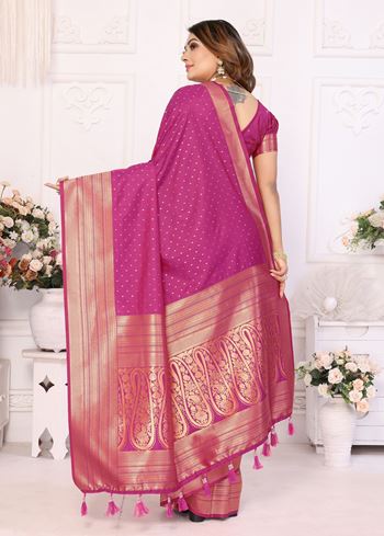 Girlie Woven Jari Designer Soft Silk Saree In Magenta