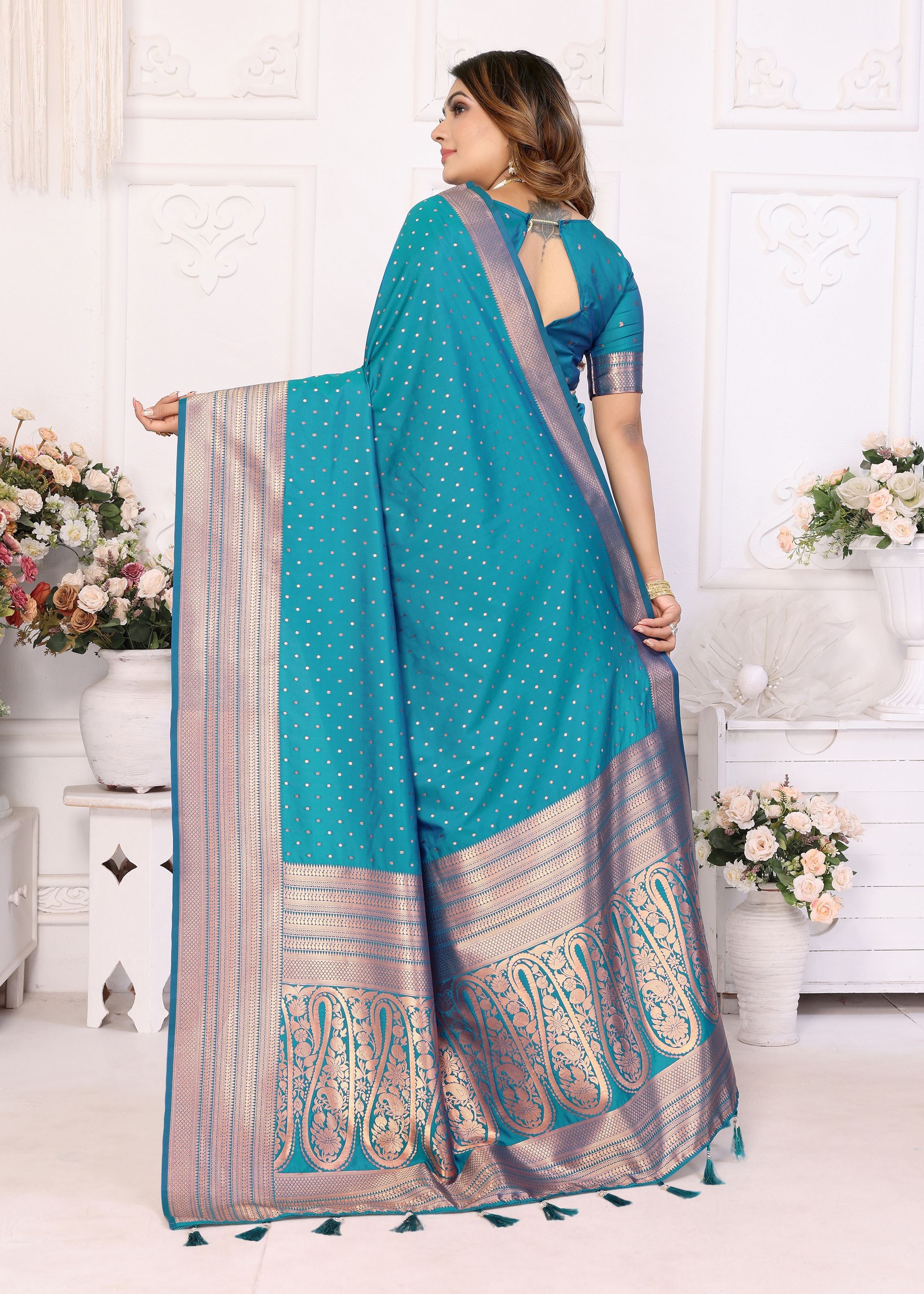Girlie Woven Jari Designer Soft Silk Saree In Teal Blue