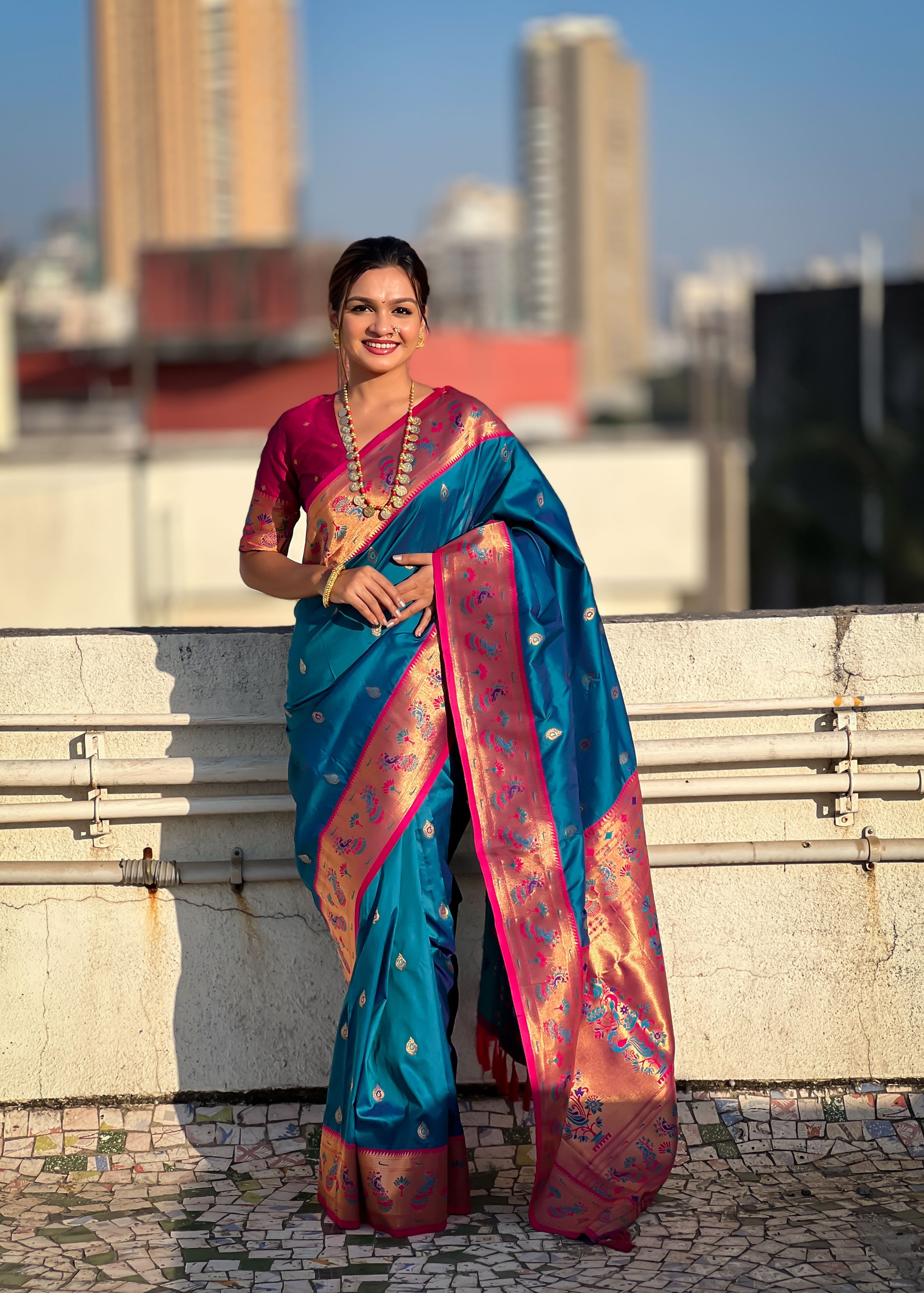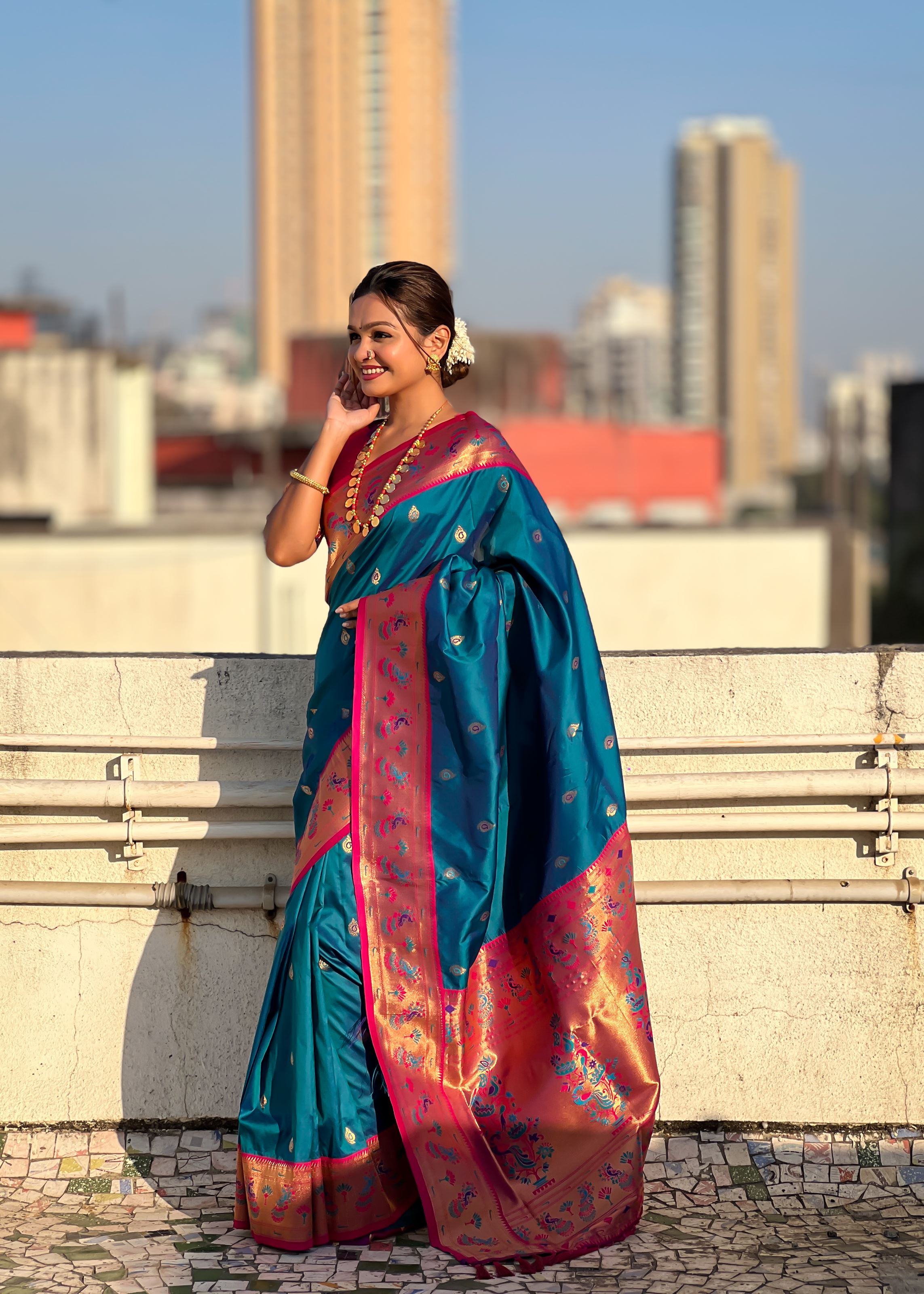 Glamorous Weaving Meenakari Designer Soft Silk Ethnic Partywear Blue Saree