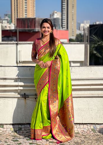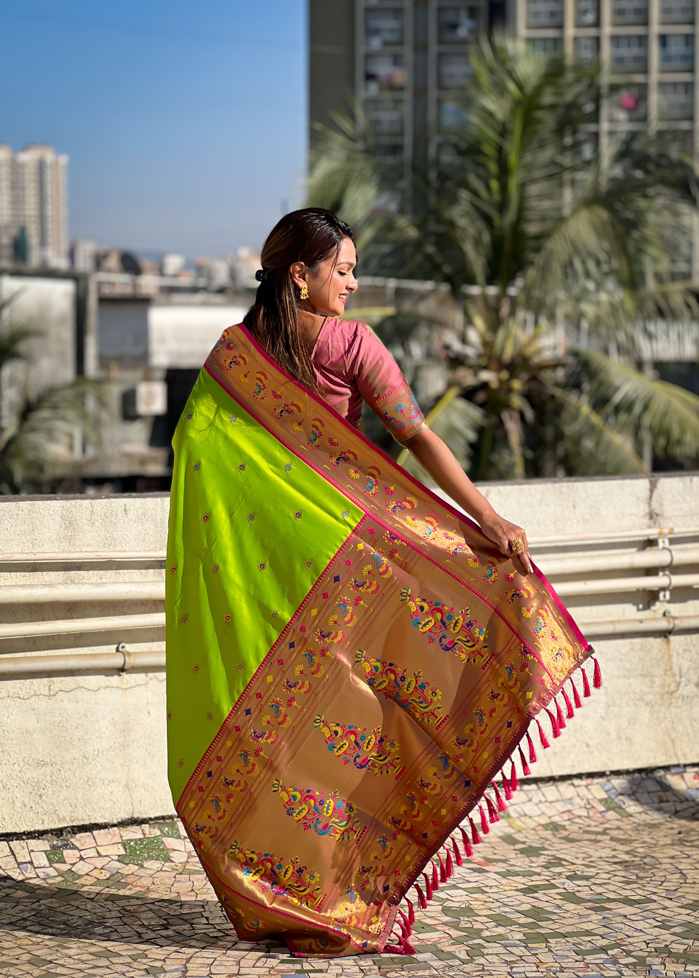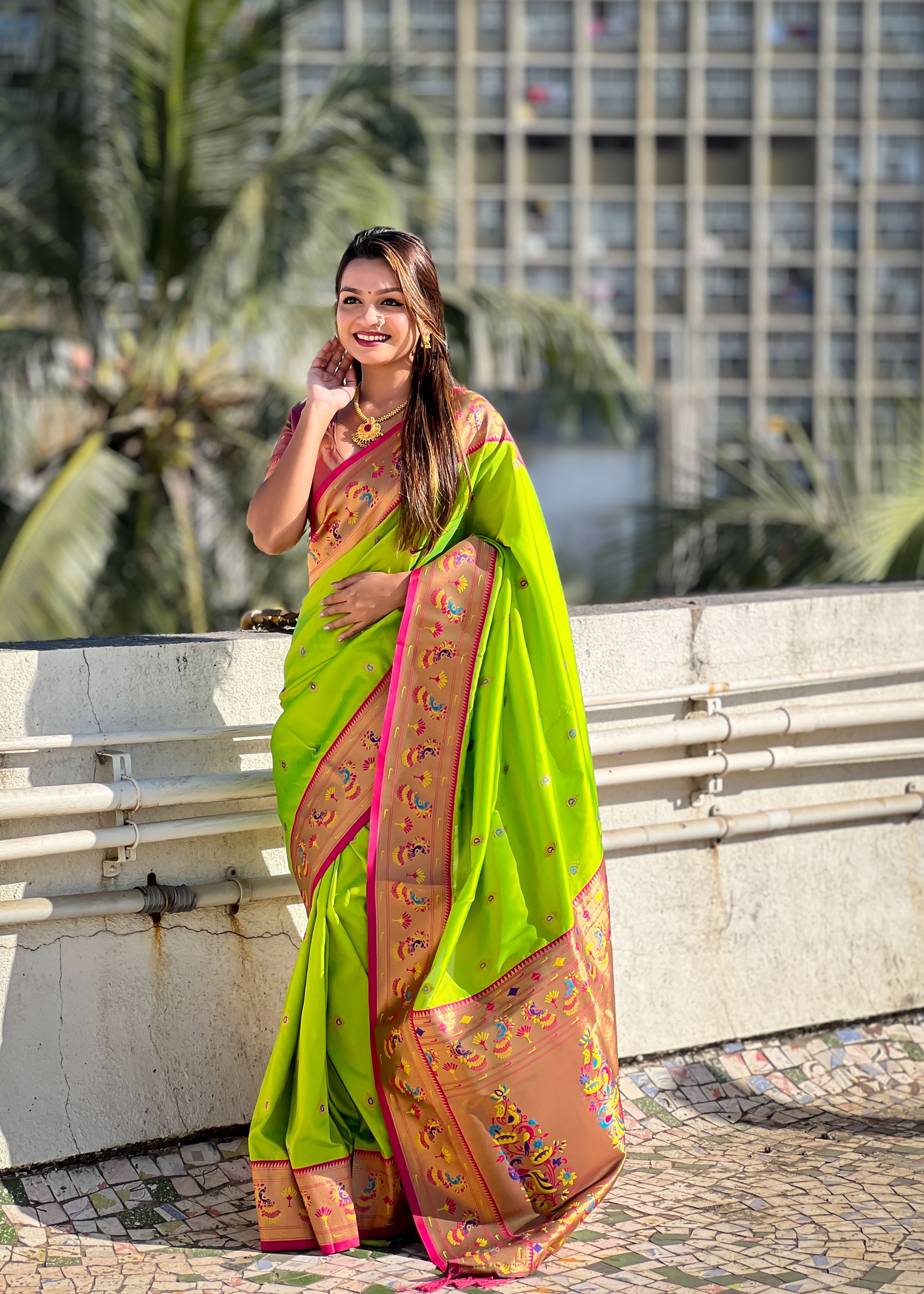 Glamorous Weaving Meenakari Designer Soft Silk Ethnic Partywear Parrot Green Saree