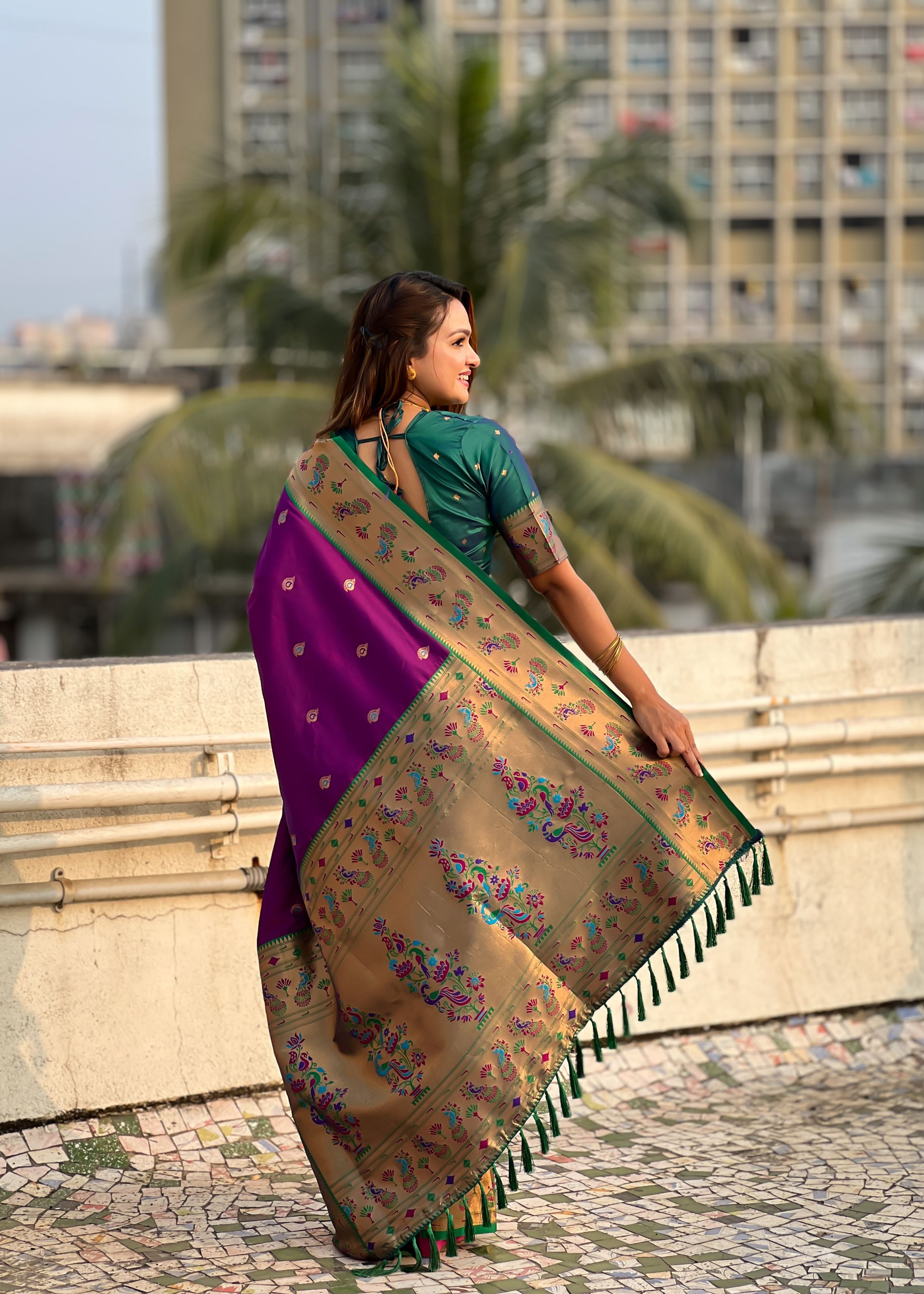 Glamorous Weaving Meenakari Designer Soft Silk Ethnic Partywear Purple Saree