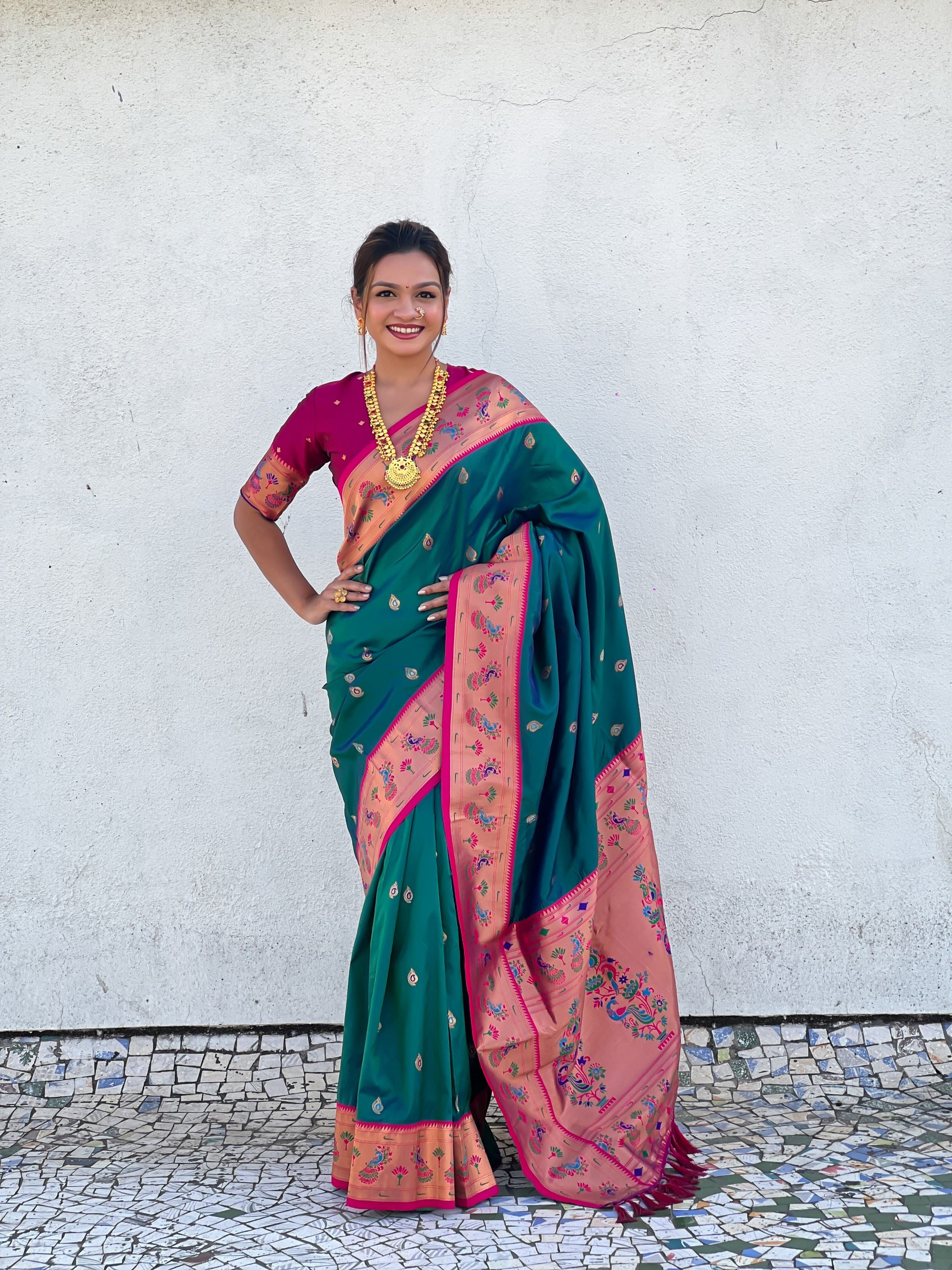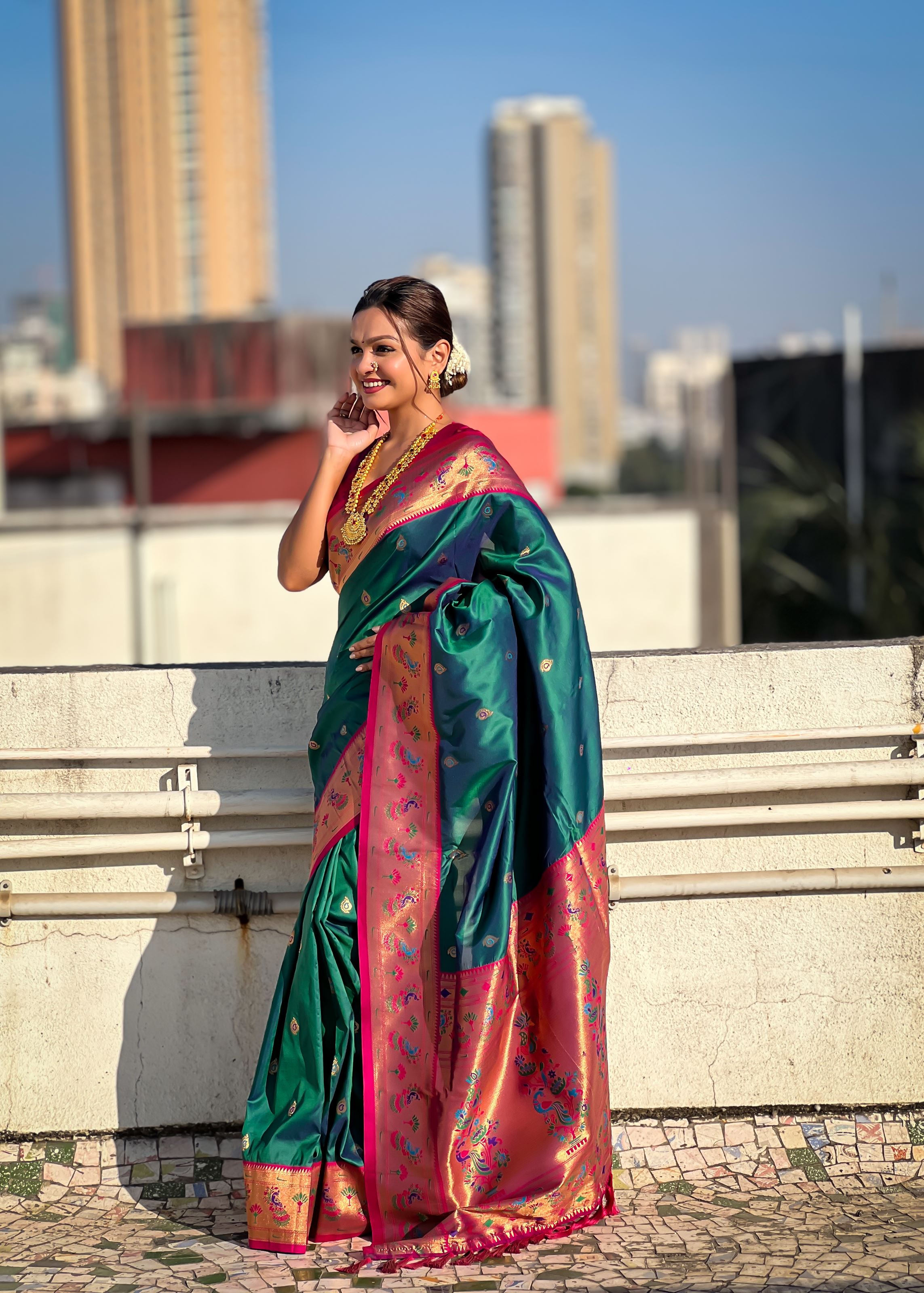 Glamorous Weaving Meenakari Designer Soft Silk Ethnic Partywear Teal Blue Saree