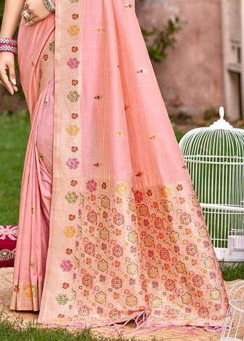 Grace-Infused Peach Assam Silk Meenakari Festival Saree