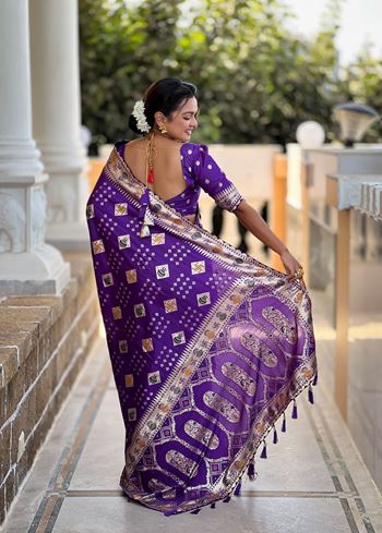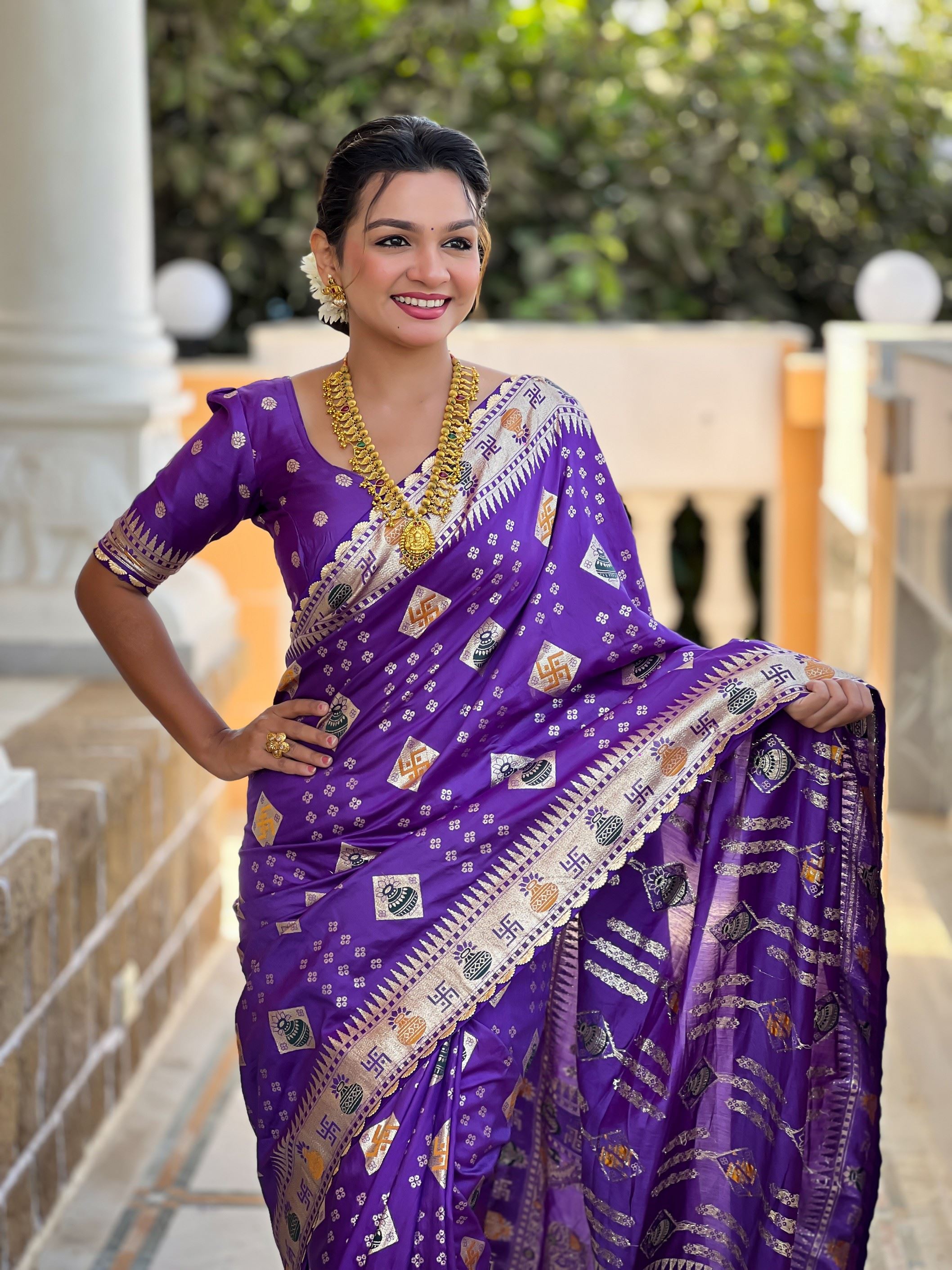 Graceful Woven Meenakari Designer Violet Dola Silk Saree